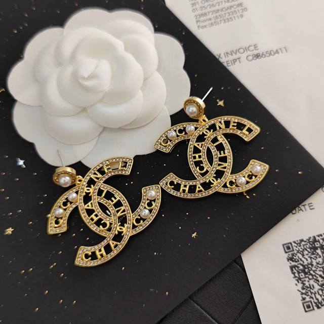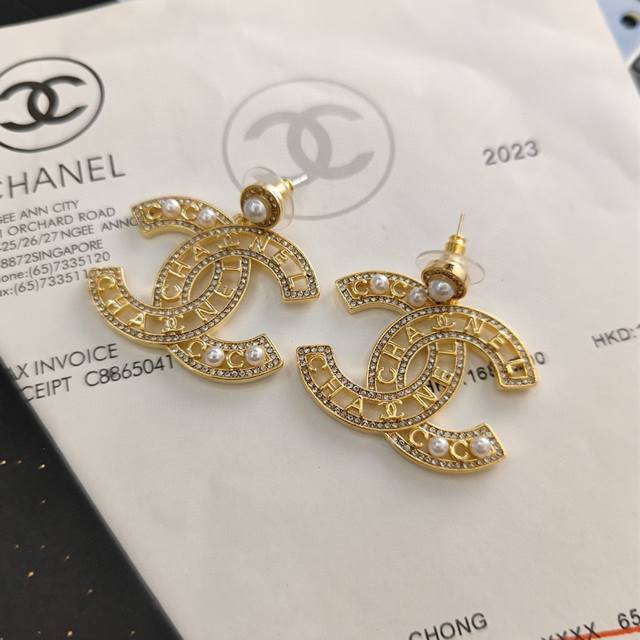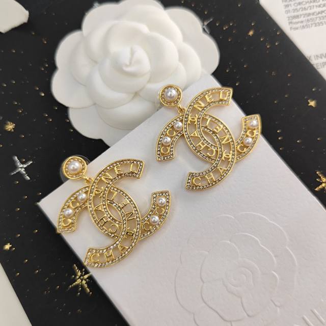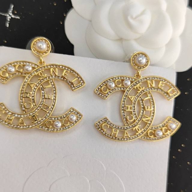 Selling like crazy Xiaochan official website mainly promotes the hot-selling Seiko version of Xiaochan's latest Chanel micro-inlaid crystal diamond hollow water drop crystal diamond pearl letter earrings Cam
