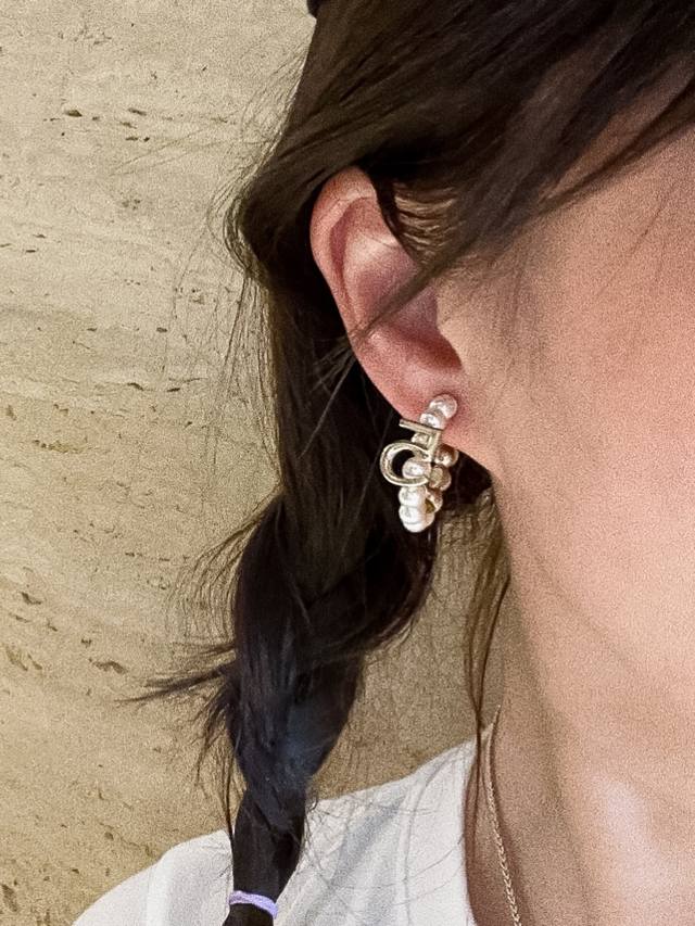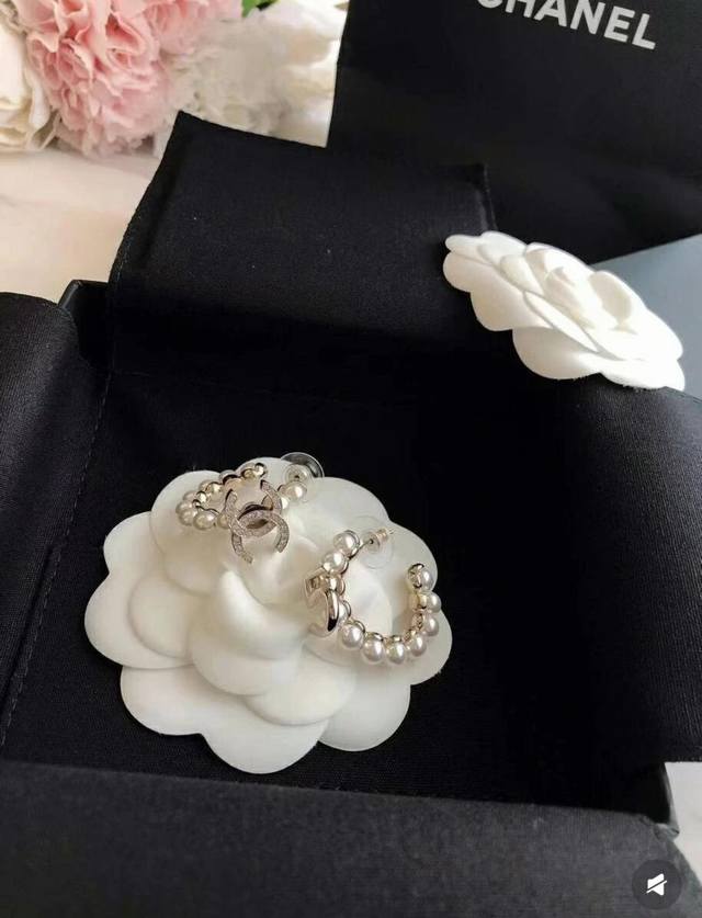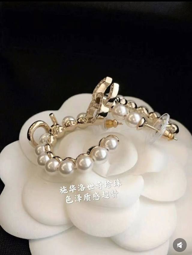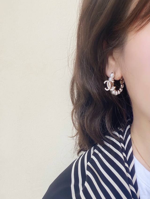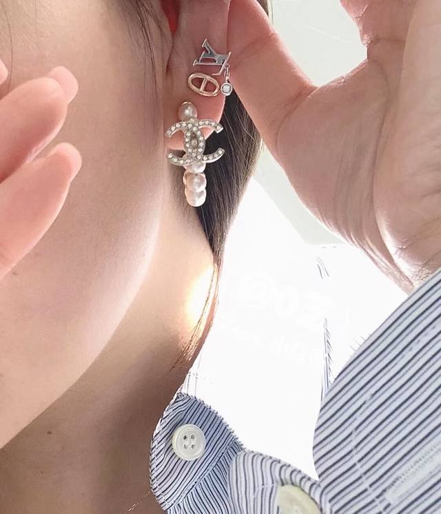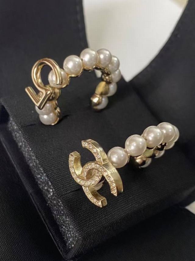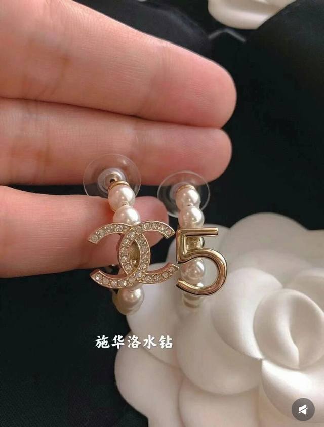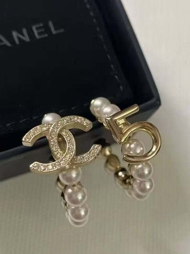 Super high-value Chanel double C No. 5 asymmetrical round pearl letter earrings. A classic double C earring every season, made of brass with Swarovski pearls and Swarovski diamonds, identical to the original. Anyone who uses Swarovski knows how expensive it is, and the elegance is truly captivating. This season, you need such a beautiful accessory to embellish your look. New half-round pearl No. 5 new haute couture unique design, absolutely gorgeous! Love it!