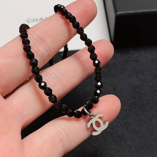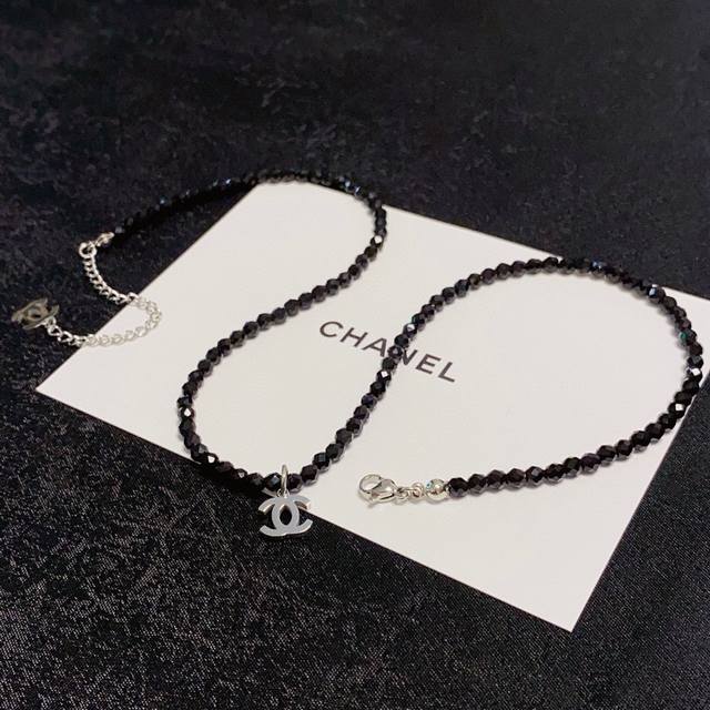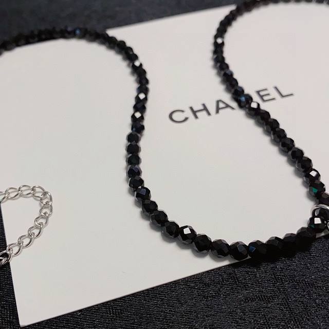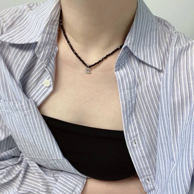 This Chanel double C logo necklace features a very unique and stylish faceted black crystal bead design. The chain is highly individualistic and versatile, making it exceptionally beautiful. The overall details are surprisingly impressive, showcasing a strong sense of design. It not only exudes personal confidence and taste, but its elegant and fashionable style also highlights French sophistication. The meticulous details further enhance its attractiveness.