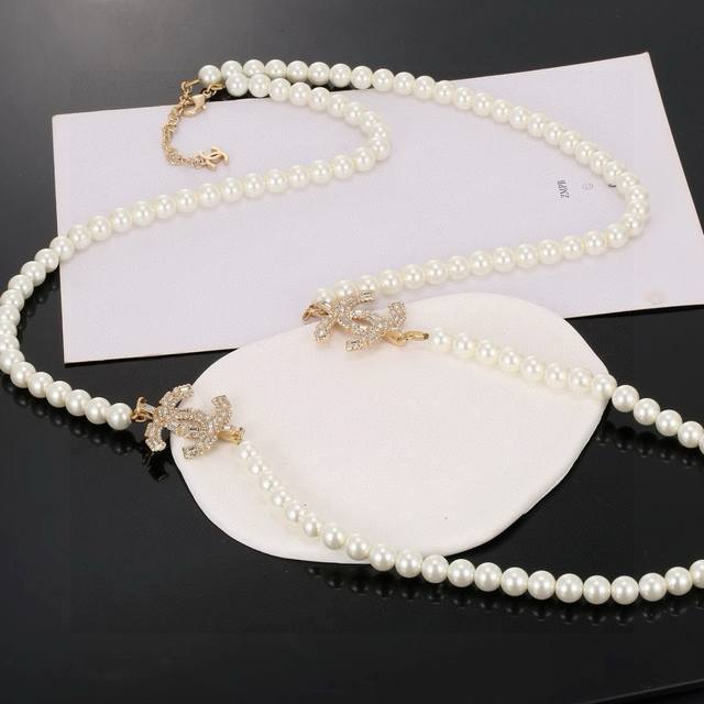 This latest Chanel double C pearl necklace/sweater chain is very beautiful. Exquisite and elegant, its quality speaks for itself. All photos are real, unedited, and genuine. Anyone who has handled Chanel items knows the quality! Zero negative reviews after retail! Every piece is absolutely original! Sweater necklace (