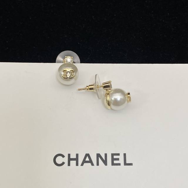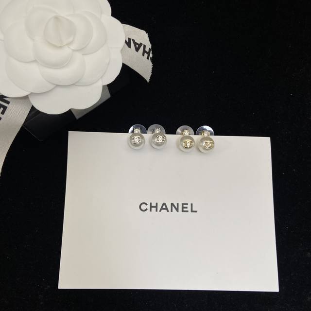/ Today's New Arrival: 2 Colors Chanel New Mini Pearl Double C Stud Earrings - Sma