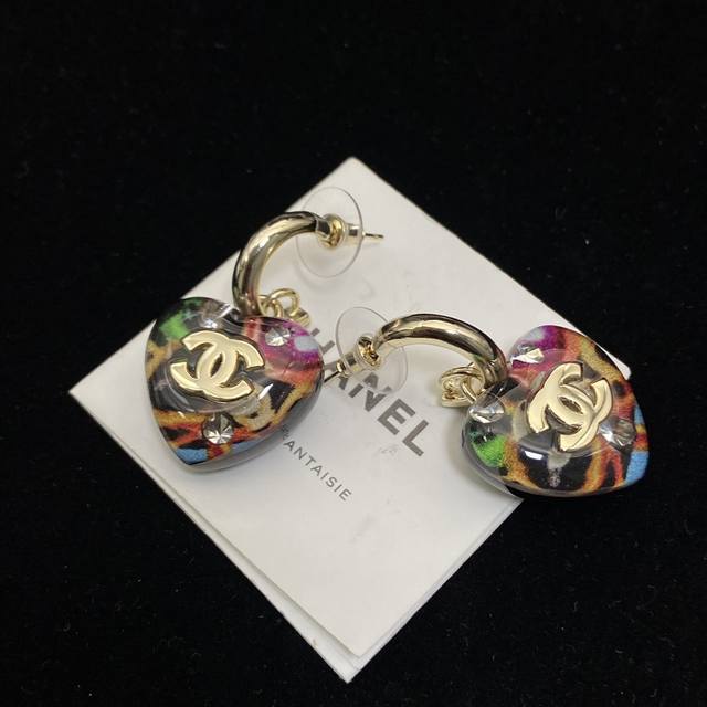 Today's New Arrival: Chanel 24A New Colorful Heart Double C Stud Earrings. Retro pop style, highly artistic and visually striking. The rounded hearts add a touch of vintage chic. Looks good on everyone, a must-have for sweet girls, hot girls, and sophisticated women.