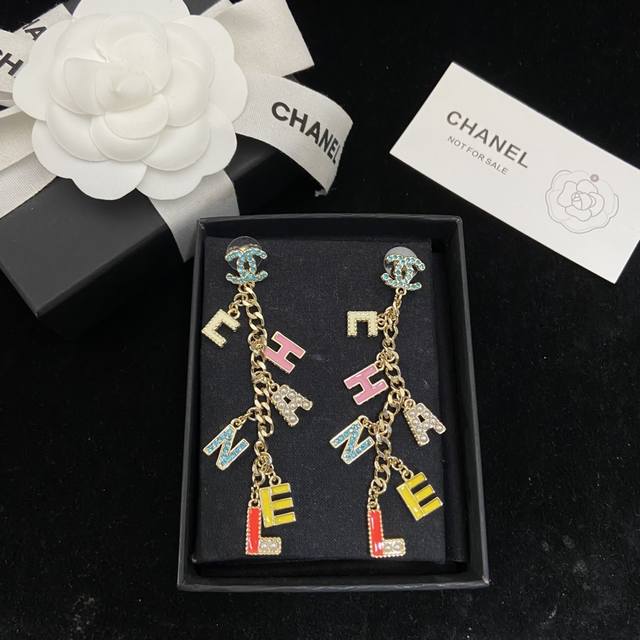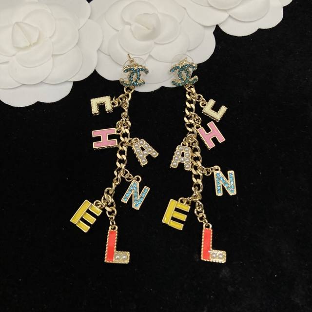 / Today's New Arrival: Chanel Colorful Enamel Letter Tassel Earrings. Eye-catching