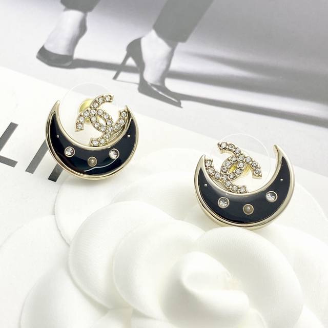 The moon connects to the full rhinestone double C, incredibly exquisite~ The moon element is a particularly atmospheric design