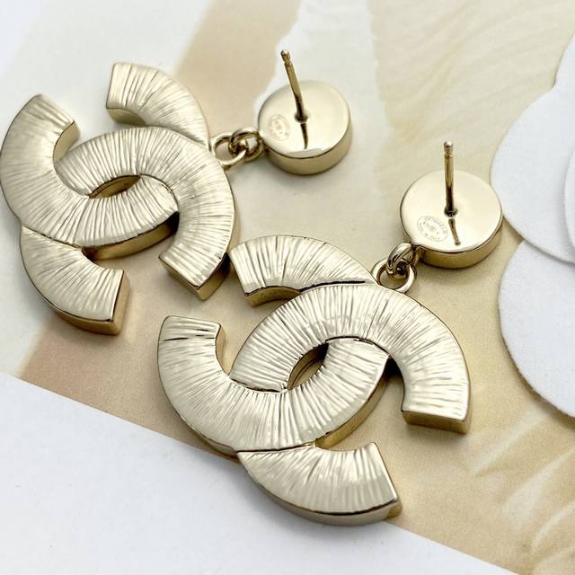 Chanel 25 Black Gold Enamel Round Double C Earrings