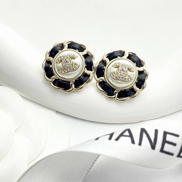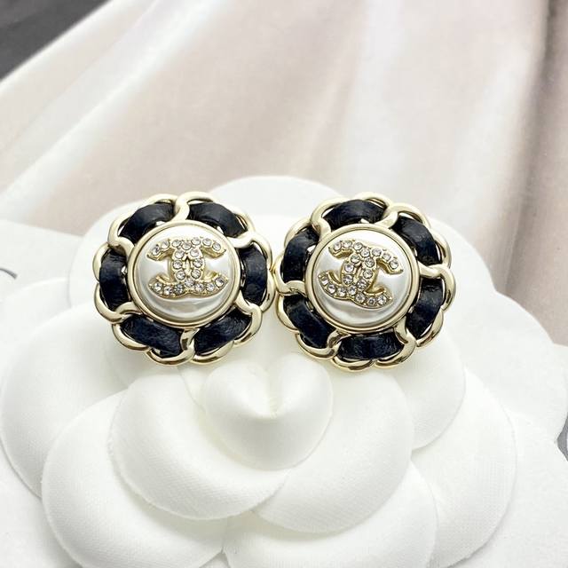 The black and gold leather chain transforms the pearls into "petals" and the "stamens" adorned with full diamond double C embellishments, forming a black and white flower shape resembling a "sunflower"