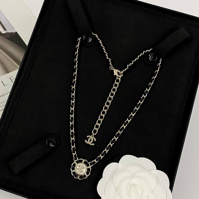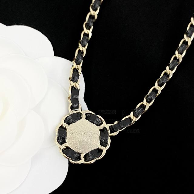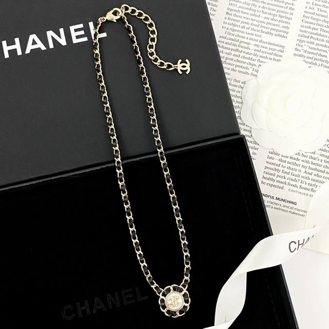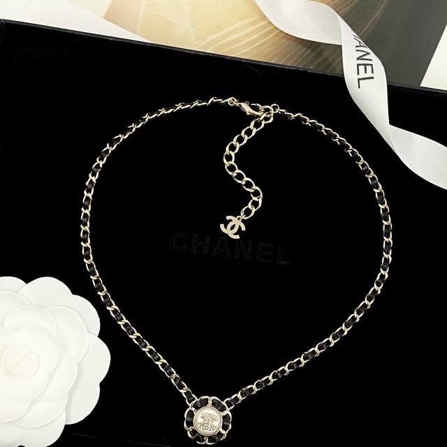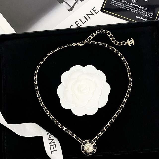 Chanel 25 Round Pearl Threaded Leather Necklace