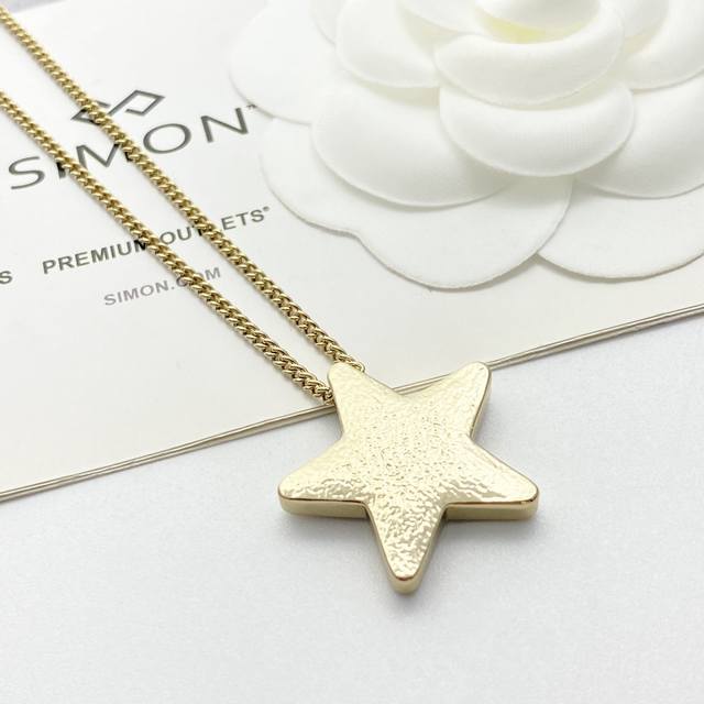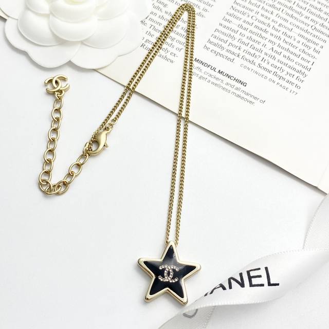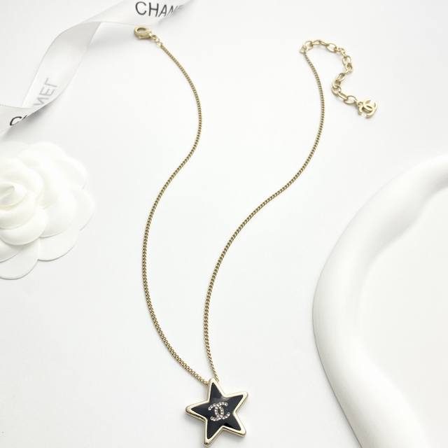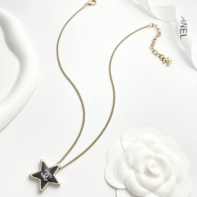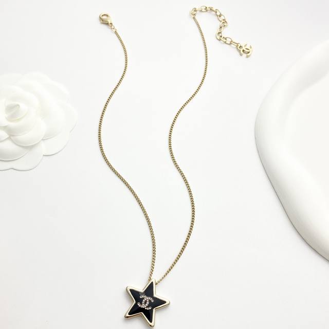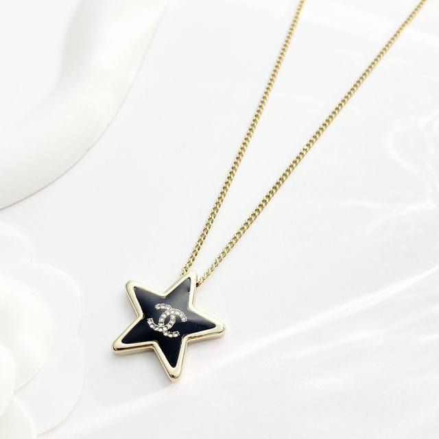 Chanel 25 Vintage Black Gold Enamel Five-Pointed Star Necklace