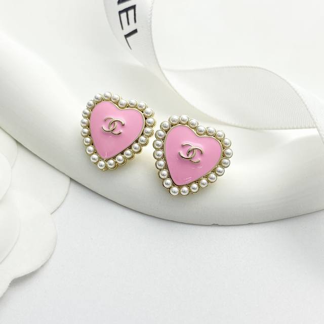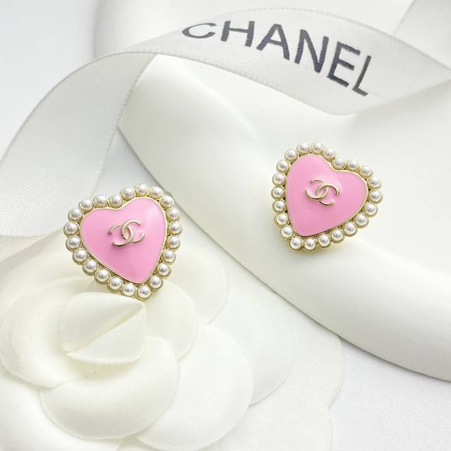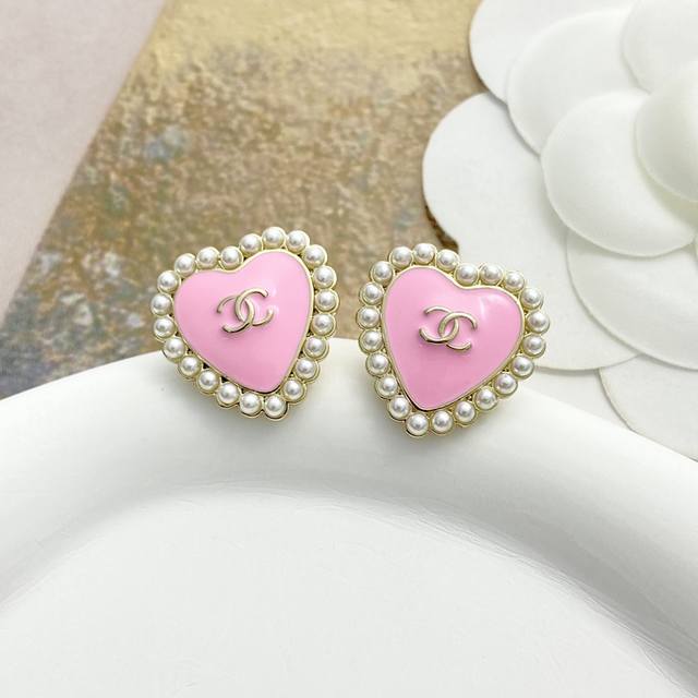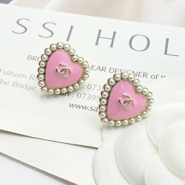 Chanel earrings are a hot seller! Chan 25 Barbie pink pearl heart earrings