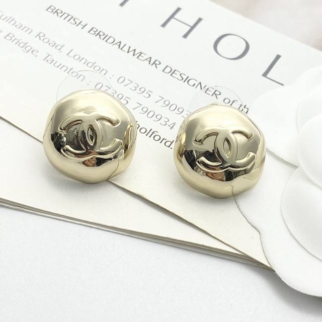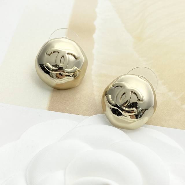 Chanel earrings are a hot seller! Chan 25 mirrored metal sphere double C stud earrings
