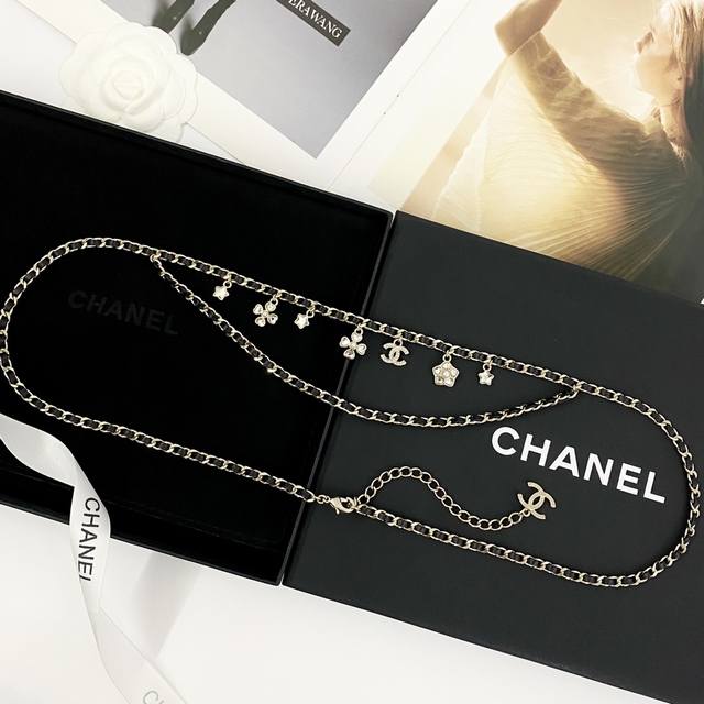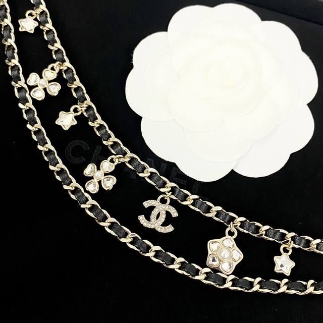 Chanel's hot-selling waist chain, the Chan 25 Star, Four-Leaf Clover, and Double C multi-element double-layer leather waist chain, features a double-layer leather design with a star, four-leaf clover, and double C multi-element pendant. This stylish, sweet, and cool black and gold design exudes a sense of uninhibited coolness, creating a stylish and stylish look for a summer outfit!