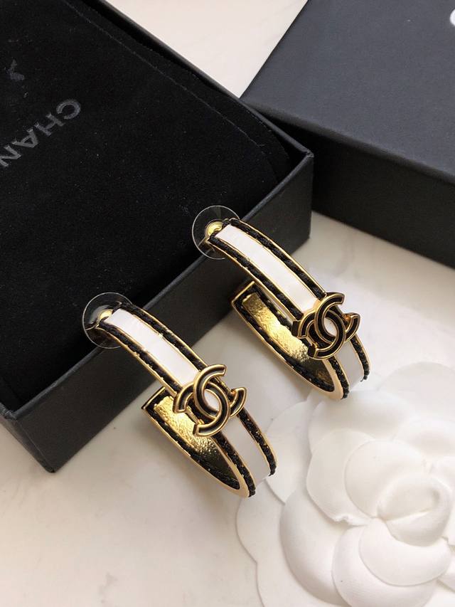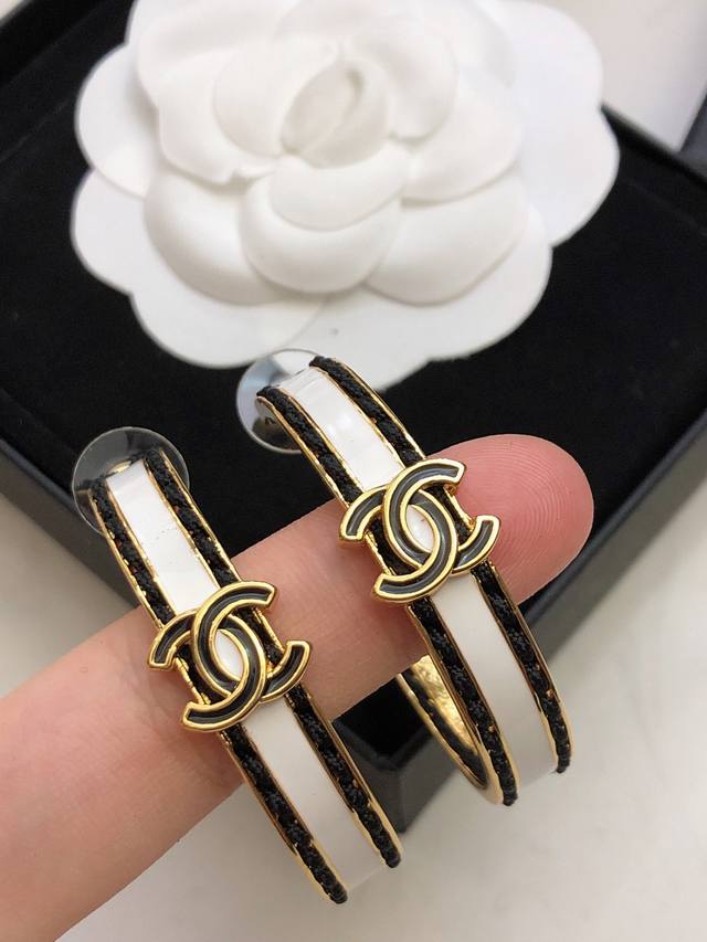 Today's Newest Chanel Earrings - Hot Selling Item! Consistent Wholesale Price! Chanel Miniature Hook Black and White Enamel Round C Double C Earrings. Black and white color-blocked enamel round design showcases a minimalist and modern style. Retro yet chic and exquisite.