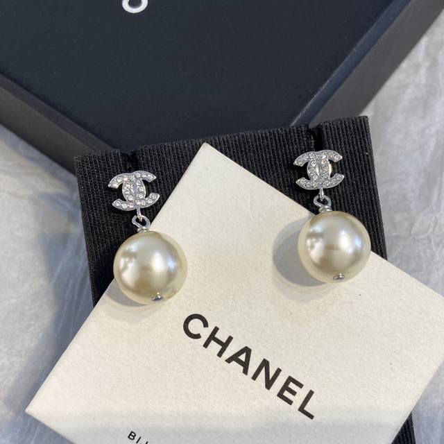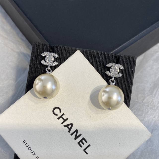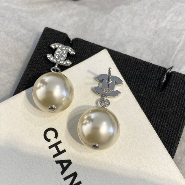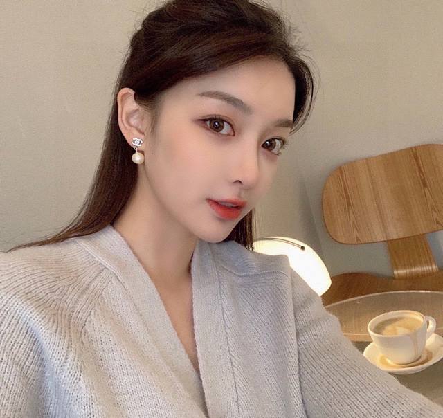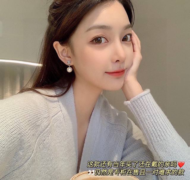 Made with imported brass, Swarovski crystals, and Swarovski pearls, the pearls are authentic, with a 12mm scale, ensuring authenticity. This is another classic from the past century. This silver double C mini drop pearl is a must-have for Xianger pearl stud earrings.