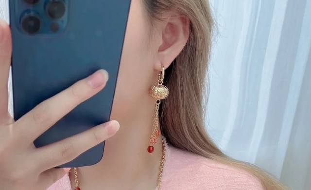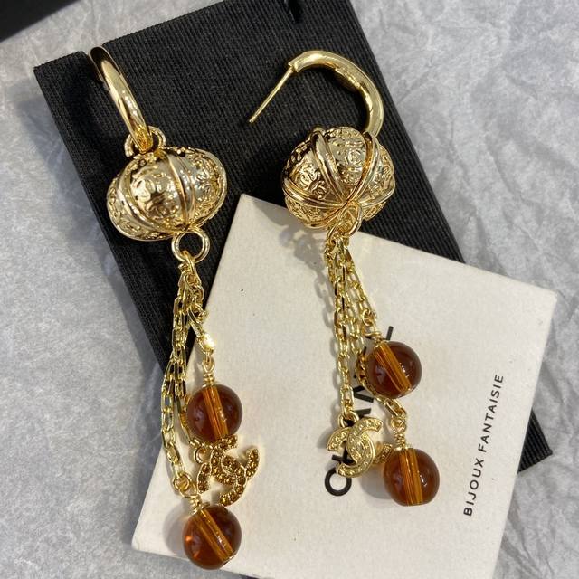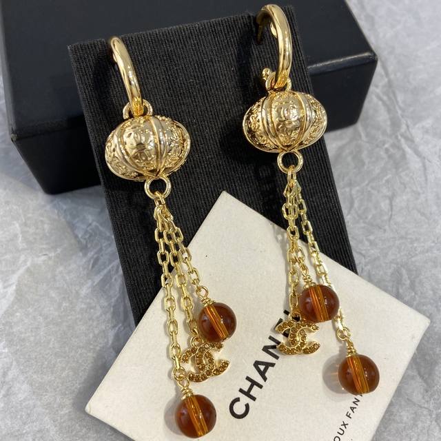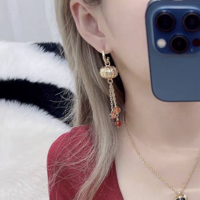 / Xe0576 Ch Nel Xianger embossed pumpkin tassel earrings Cute, playful and exquisi