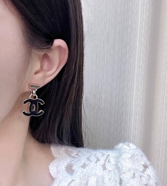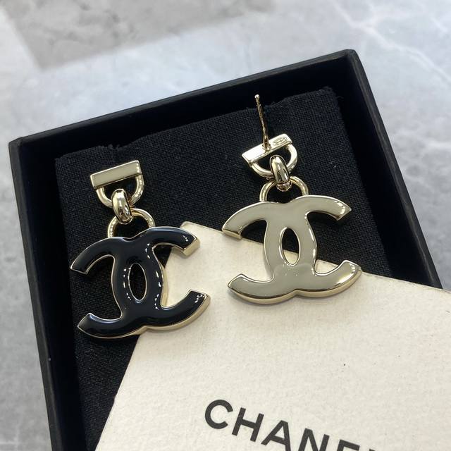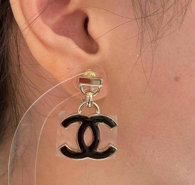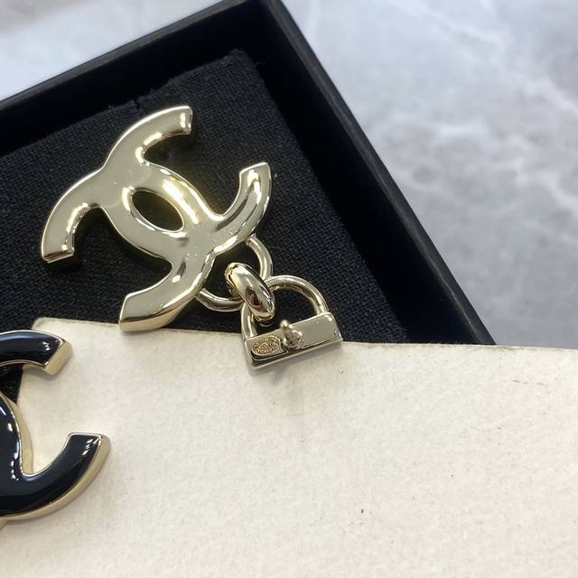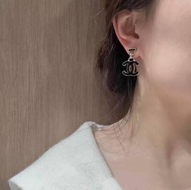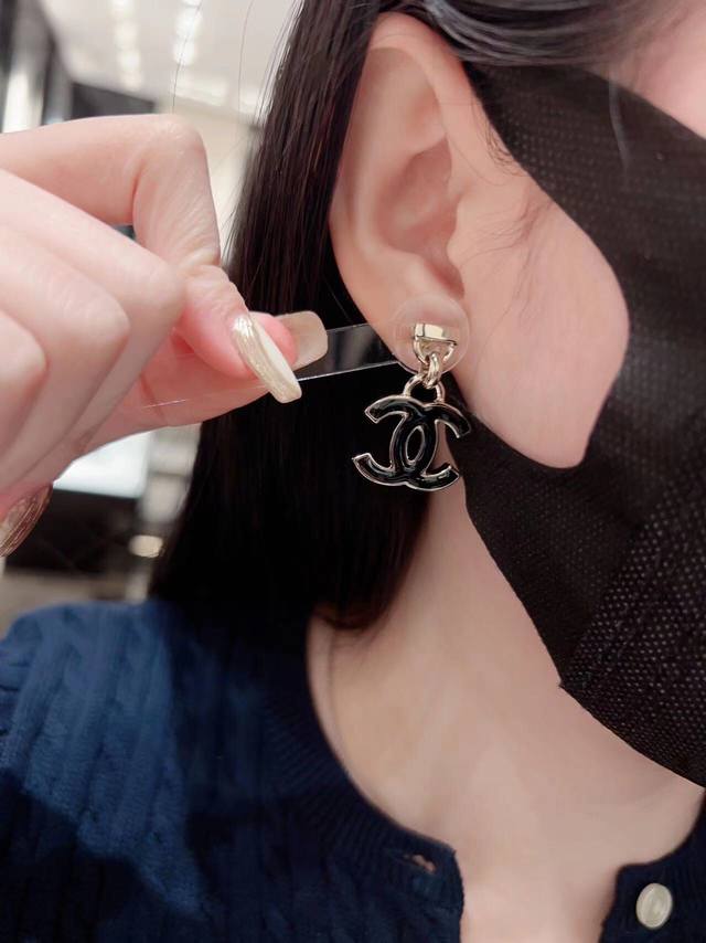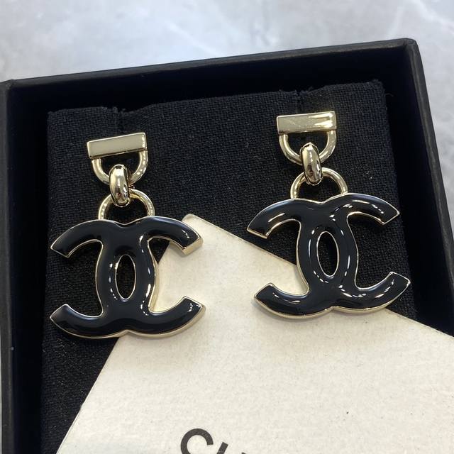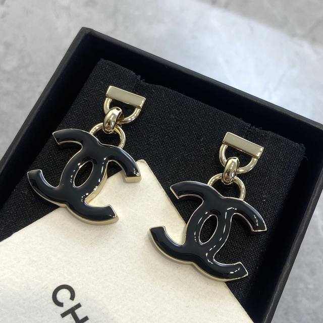 Ch Nel Xiang'er Black Gold Enamel Double C Earrings