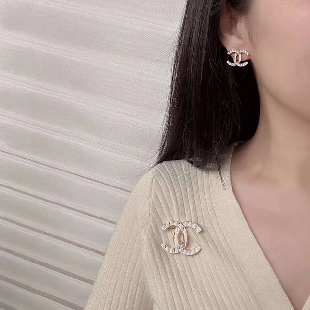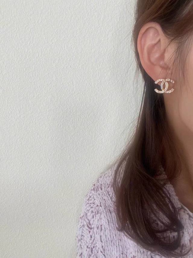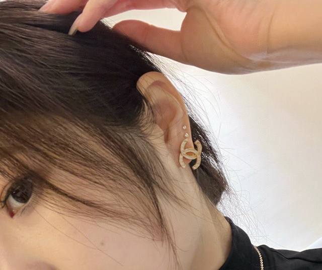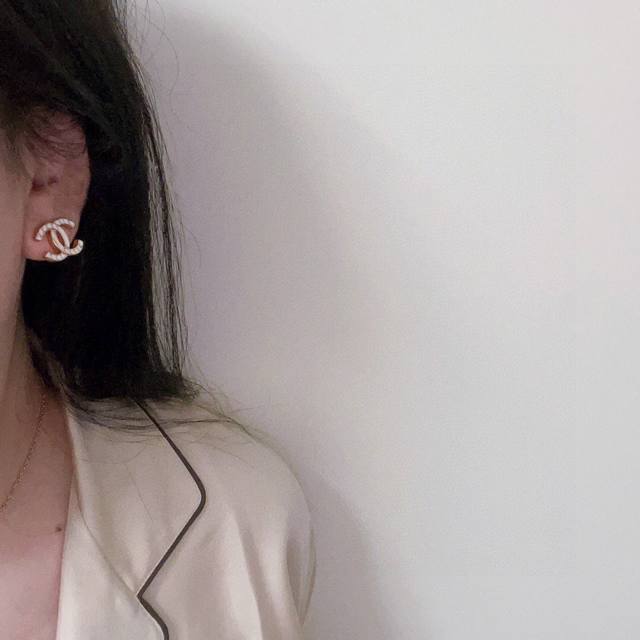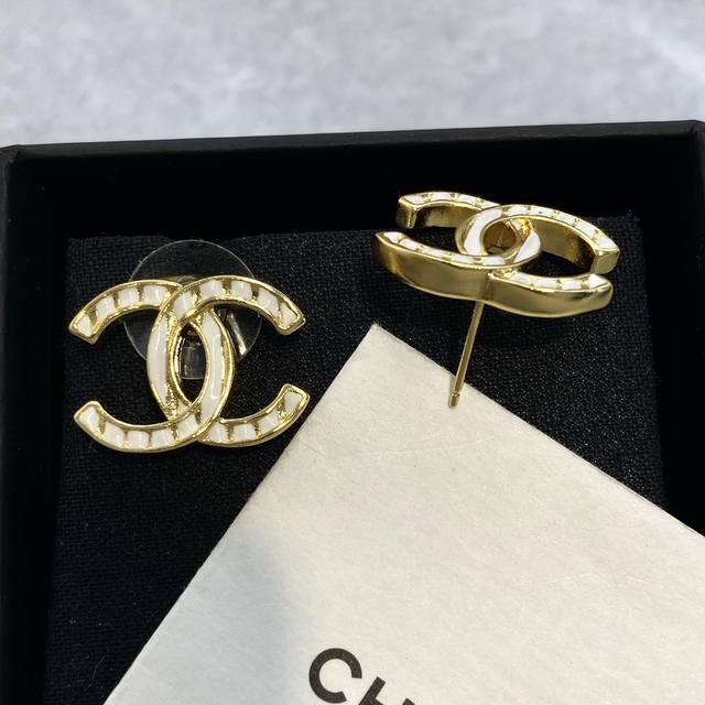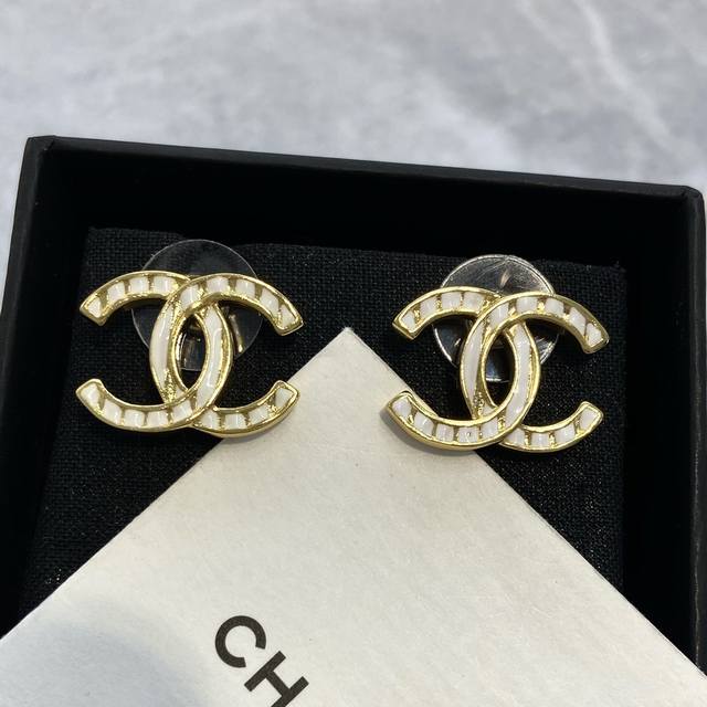Ch Nel Xiang'er 23C early spring new gold and white double C earrings