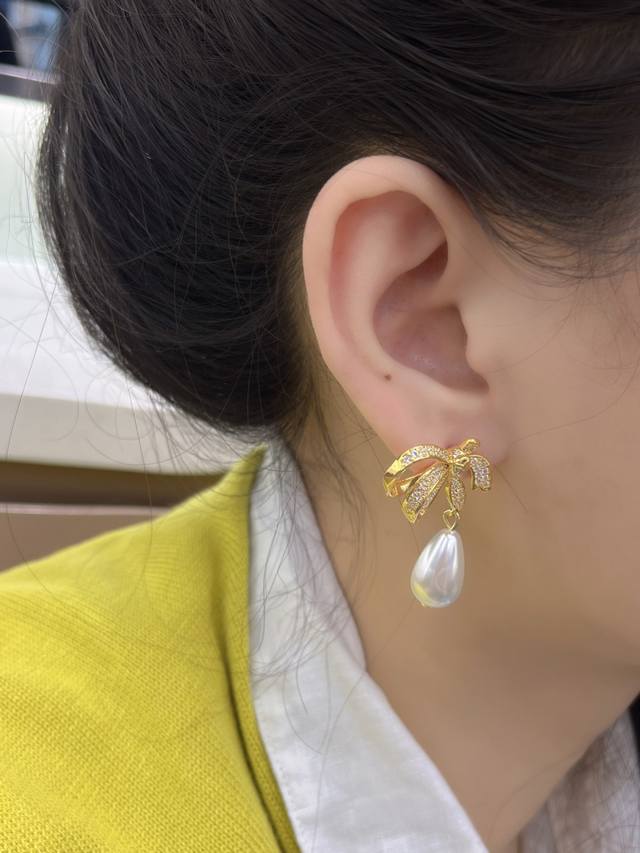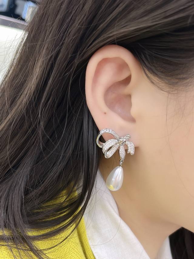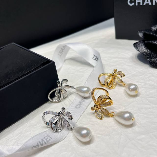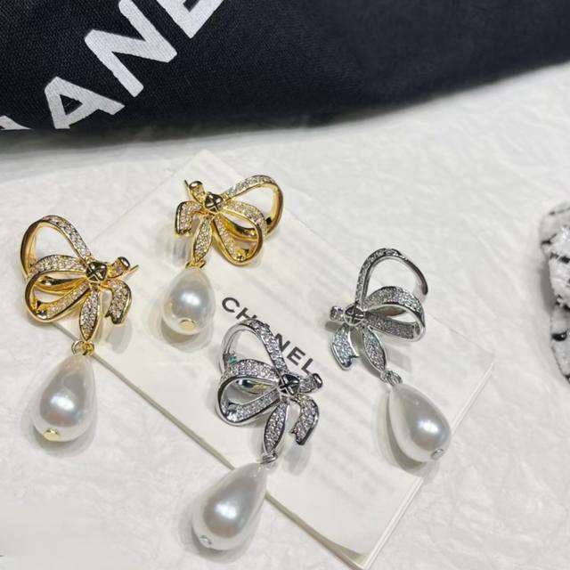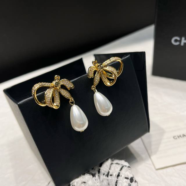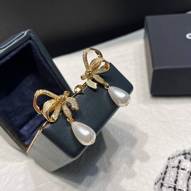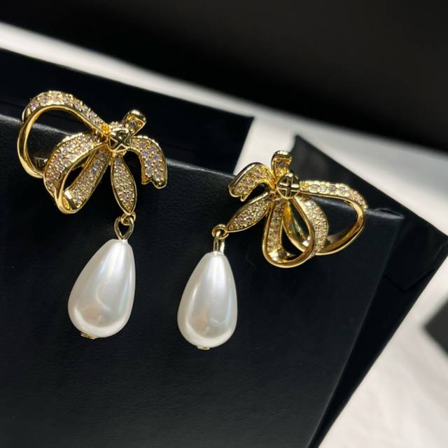 Xiaohongshu recommends 25 new bow-knot teardrop pearl earrings. Celebrity-similar Chanel full-diamond bow earrings.