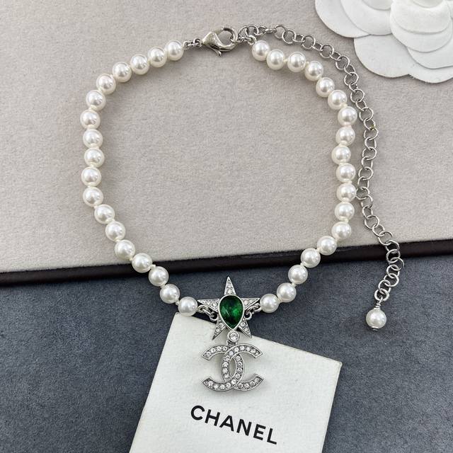 Adjustable length Classic star double C element Emerald white gradient crystal embellishment Swarovski pearls, high-end jewelry feel, fairy-like, so beautiful, very gentle, and eye-catching. Fairies, believe me, buy both colors without hesitation [witty][witty] Fashionable and elegant, also makes your skin look whiter, exquisite and high-end, fashionable and stylish at the same time. Wear it, you will be the most dazzling girl in the crowd. Trust me, buy this series without hesitation, you can't go wrong