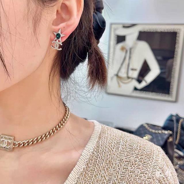 Xe0398 Earrings Ch Nel Xiang'er 23P Double C Star Crystal Pearl Necklace Earrings
