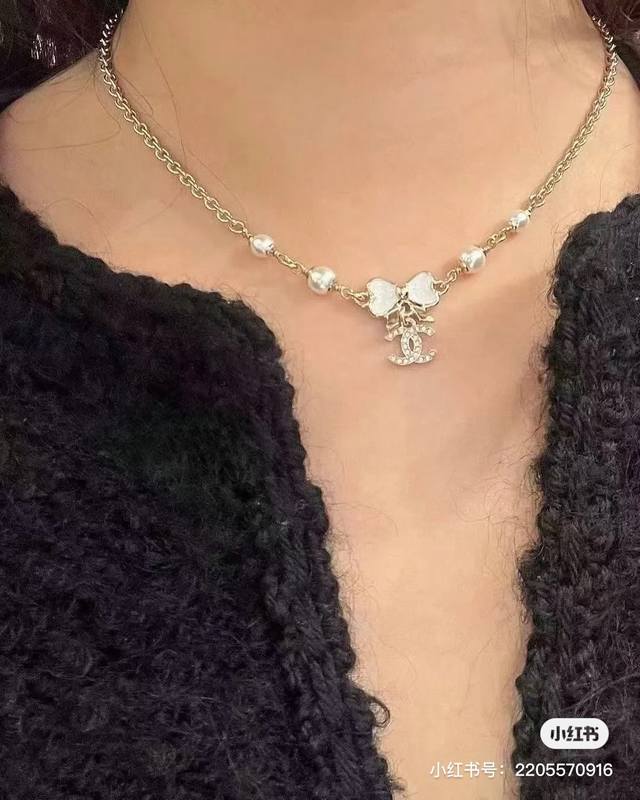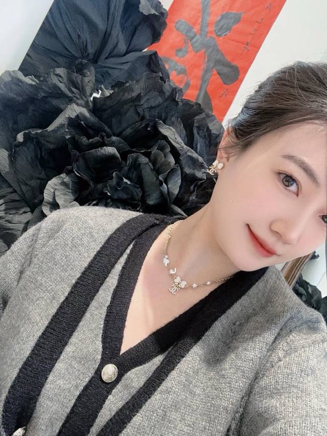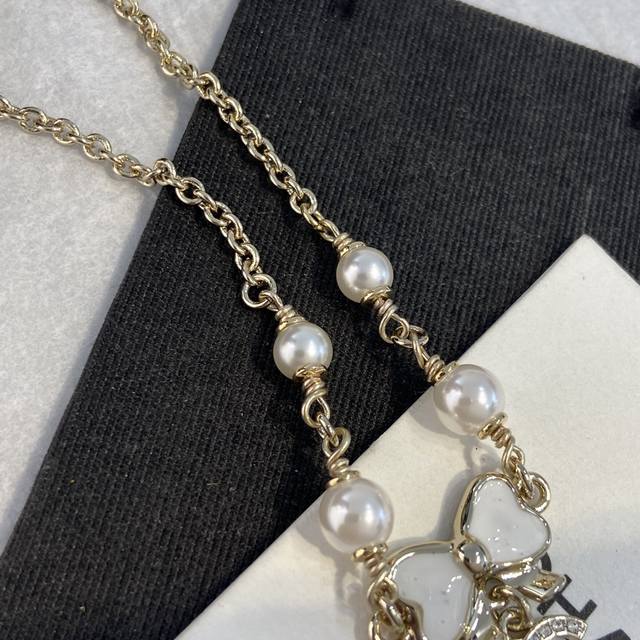 Xx0470 Ch Nel Xiang'er white enamel four-leaf clover pearl necklaceIt's so fairy