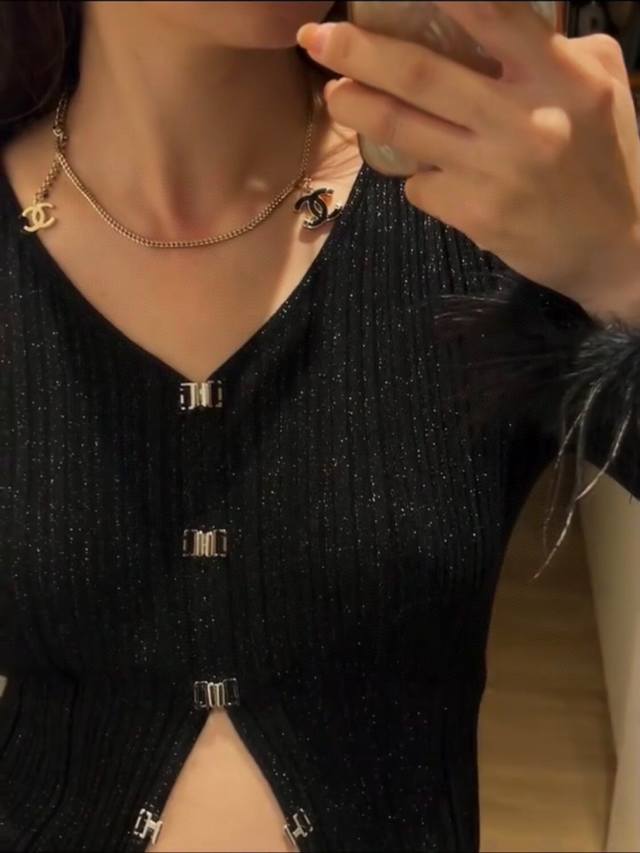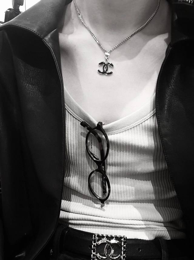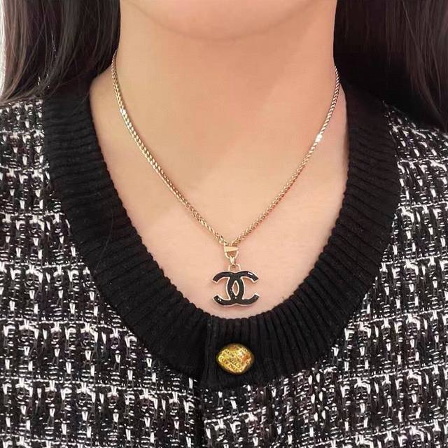 Ch Nel Xiang'er Double C Black Enamel Necklace