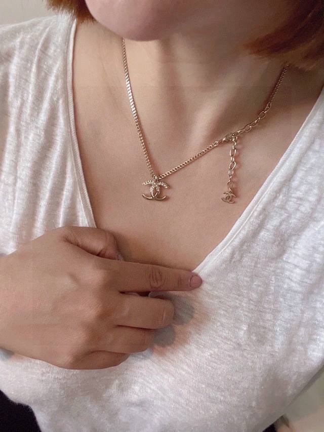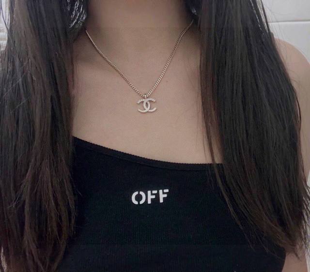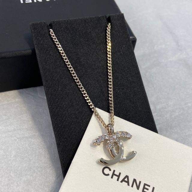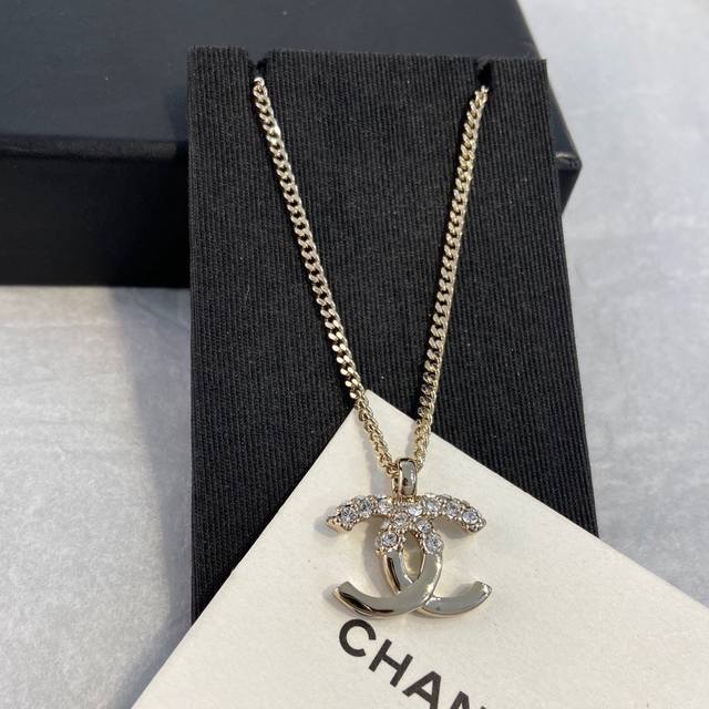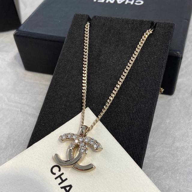 Ch Nel Xiang'er 22K Double C Half-Diamond Necklace