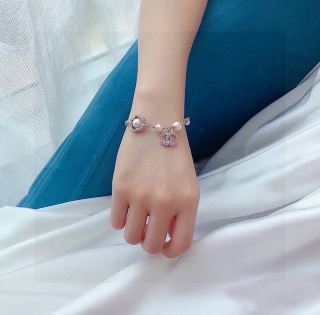 Zp replica Chanel star pearl camellia bracelet, elegant and sophisticated design, youthful and vibrant, instantly captivating with its beautiful color combination, stylish and playful.