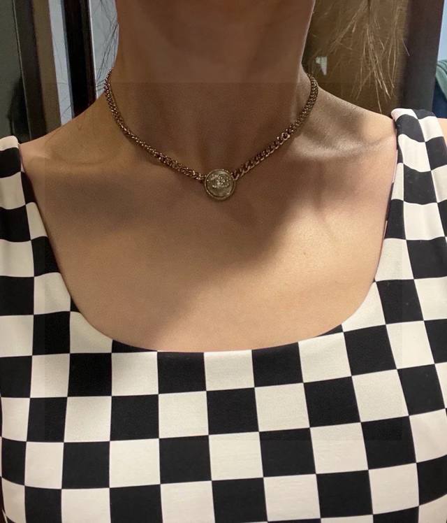 Chanel Double C Button Necklace. The double C logo is very delicate, and with th