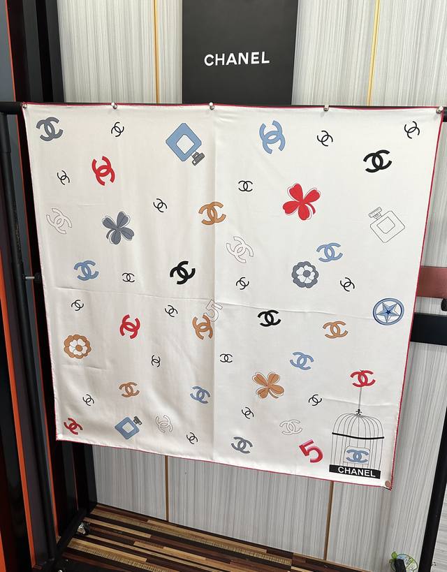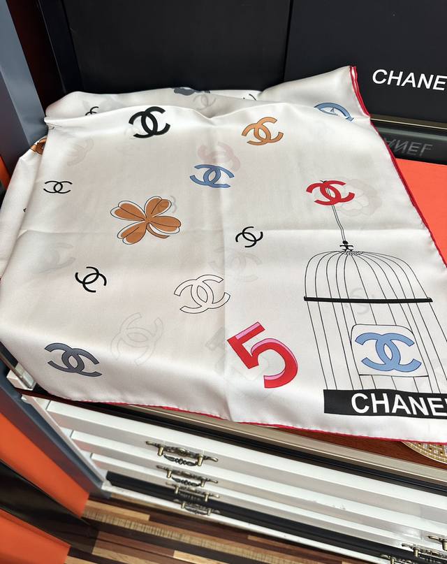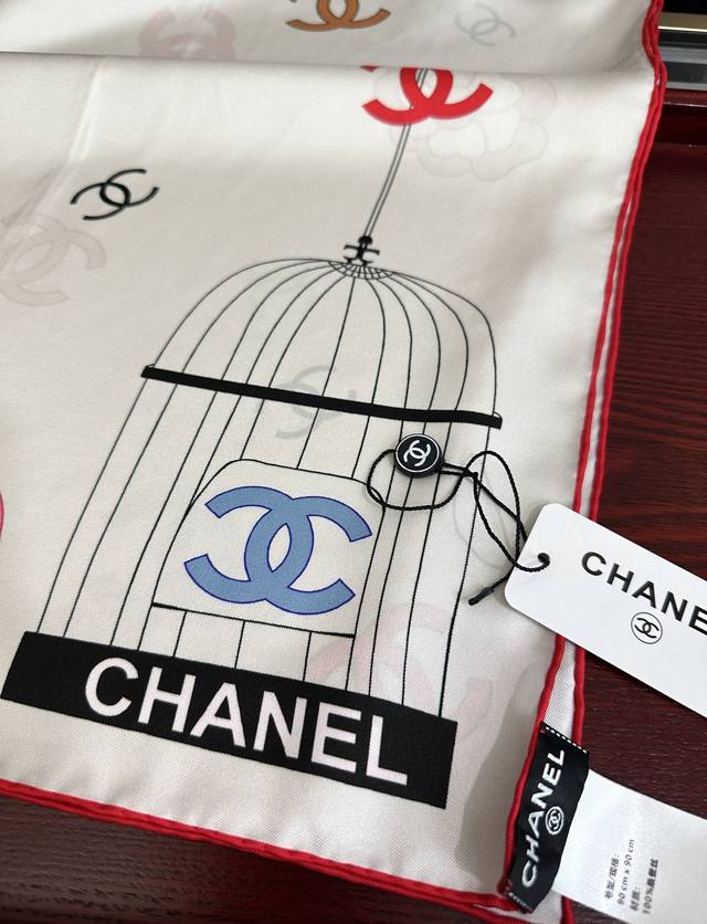 Chanel Letter Birdcage Scarf. The classic color scheme blends the brand logo with artistic birdcage elements, exuding a subtle yet sophisticated feel. [lips] Based on the iconic letter pattern, it features the latest birdcage logo, paying homage to Gabrielle Chanel's private collection and free spirit. The birdcage element symbolizes "flight and elegance," giving the scarf a deeper meaning. A timeless piece suitable for collectors. [lips] Versatile and elevates the overall look. A scarf is the beginning of countless styles. Size: 90X90, Material: Silk, 2 colors.