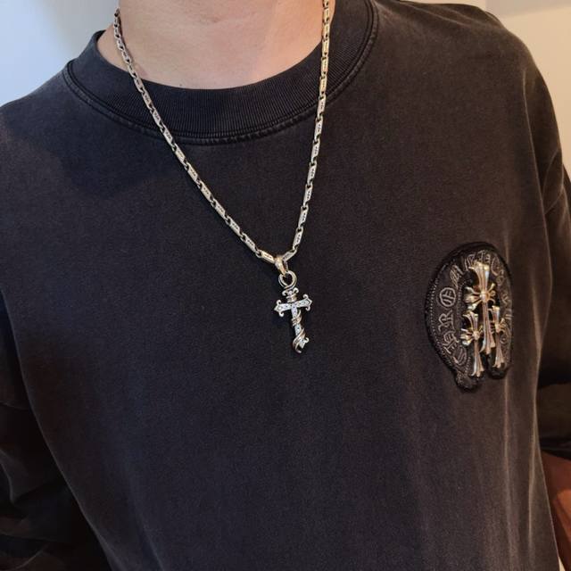 New boutique quality Chrome Hearts classic retro cross necklace, full diamond cross pendant, embossed design, different patterns and styles present a unique look. The cross and scout flower are the symbol of Chrome Hearts, making it timeless. Authentic Chrome Hearts replica, different from ordinary light versions on the market. Quality is comparable to the original, look at the details of the lettering, the vintage distressed finish, and the degree of gray oxide. Exquisite craftsmanship! Purely handmade~Authentic mold, trendy and fashionable, a must-have for men and women, suitable for couples. Official website original, rock punk Thai silver style, retro elements, trendy and versatile! DDD