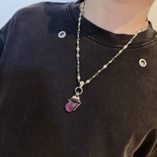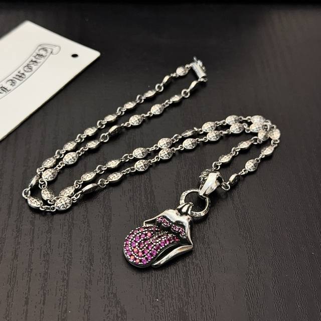 New boutique quality Chrome Hearts classic retro cross necklace. The pink diamond tongue pendant features a unique design with different patterns. The cross and scout flower are Chrome Hearts' signature elements, making it timeless. Authentic Chrome Hearts replica, distinguishing it from ordinary market versions. Quality is guaranteed; look at the details of the lettering and the vintage, distressed finish. Exquisite craftsmanship! Handmade! Authentic mold, trendy and fashionable, suitable for both men and women, perfect for couples. Official website original, rock punk Thai silver style, retro elements, trendy and versatile!