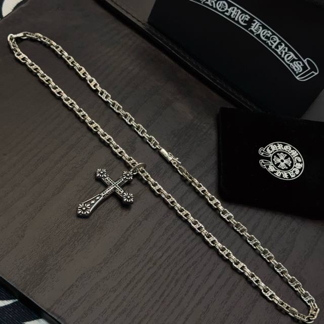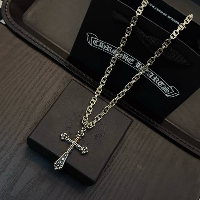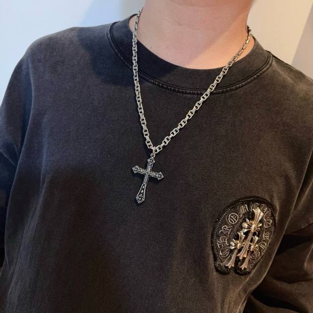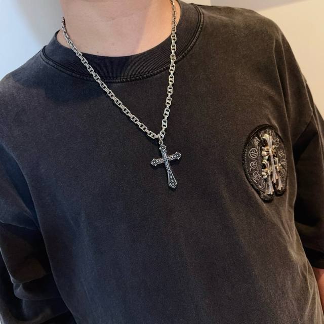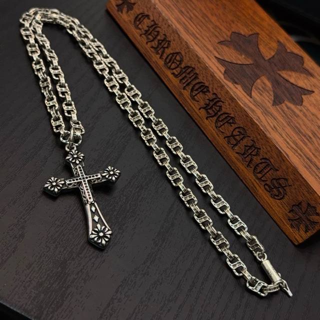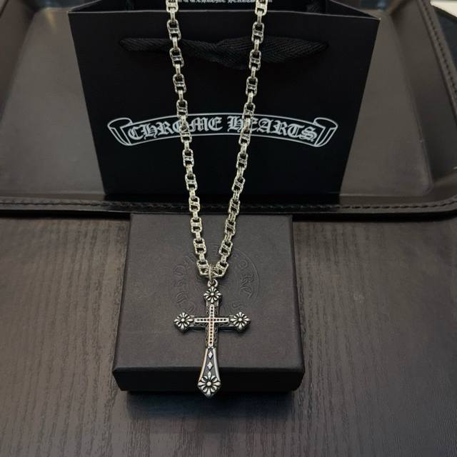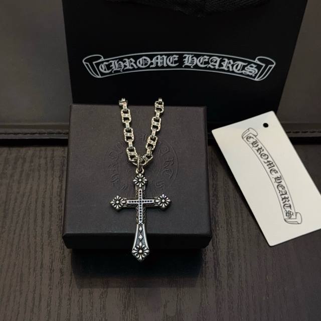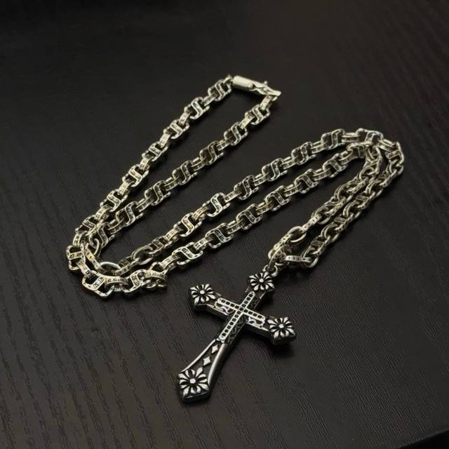 Popular on Douyin, Kuaishou, Ins, and Xiaohongshu live streams: New high-quality Chrome Hearts cross necklace with a cross pendant. The unique design features different patterns and textures. The cross and scout flower are the hallmarks of Chrome Hearts, making it timeless. Authentic Chrome Hearts replica, distinguishing it from ordinary versions on the market. High-quality replicas are distinguished by the lettering details, vintage finish, and gray alumina level. Exquisite craftsmanship! Handmade! Authentic mold, trendy and fashionable, suitable for both men and women, couples, official website original, rock punk Thai silver style, retro elements, trendy and versatile!