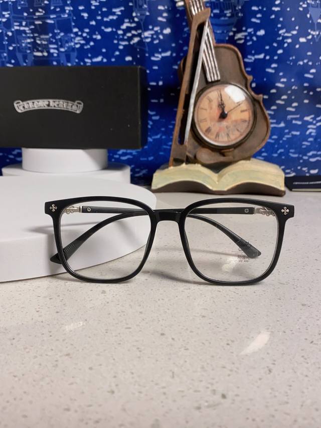Chrome Hearts 2025 Korean Style Black Frame Anti-Blue Light Glasses for Men and Women, Personalized Fit, Prescription Glasses, Plain Glasses Frame with Star Decoration