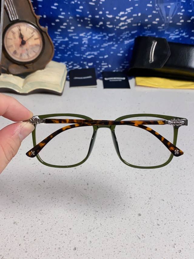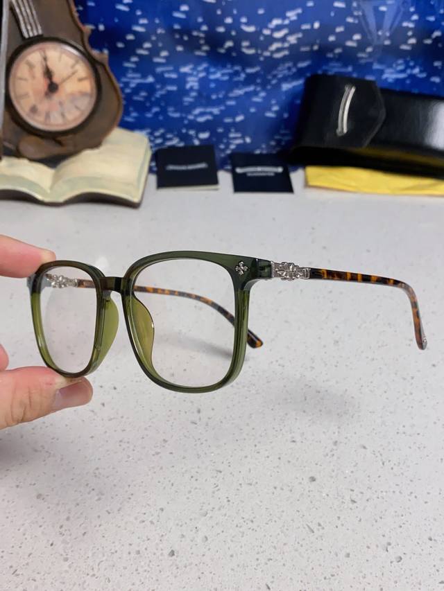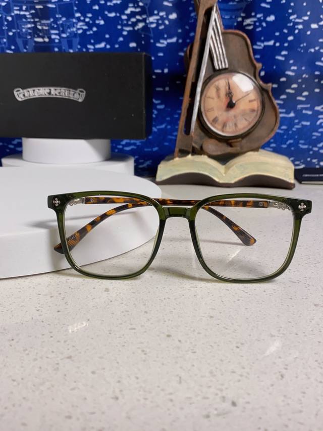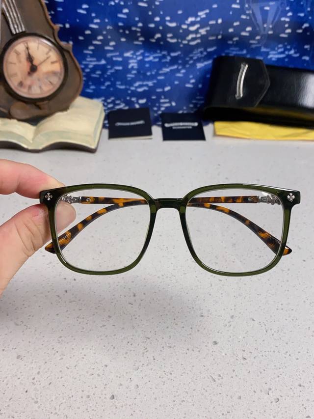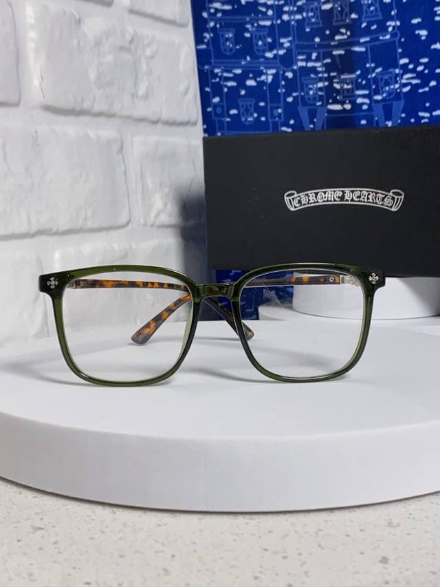 Chrome Hearts 2025 Korean Style Black Frame Anti-Blue Light Glasses for Men and Women, Personalized Fit, Prescription Glasses, Plain Glasses Frame with Star Decoration