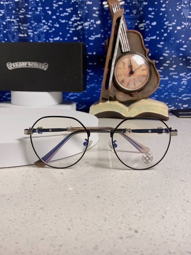 Chrome Hearts 2025 New Retro Style Eyeglasses Frames for Men and Women, Korean Style, Trendy, Round Frames for Myopia, Suitable for Large Faces, Popular Online Style, Anti-Blue Light, Non-Prescription Glasses (