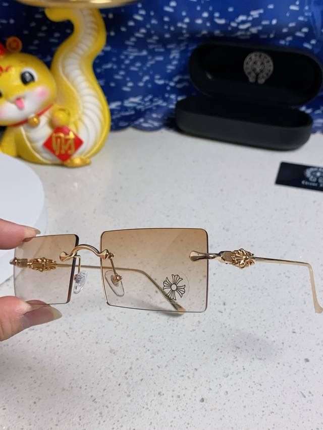 Chrome Hearts Croatia 2025 New Korean Style Fashion Frameless Cut-Edge Sunglasses Summer Sunshade Anti-UV Sunglasses Rectangular Style Glasses Optical Frame