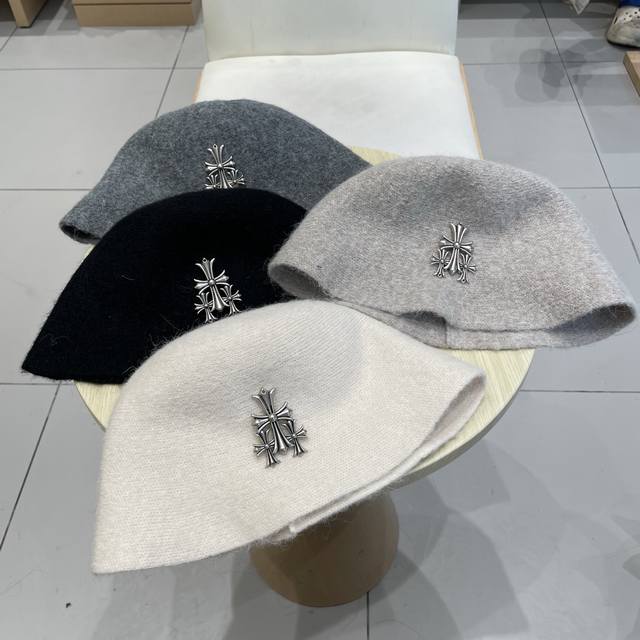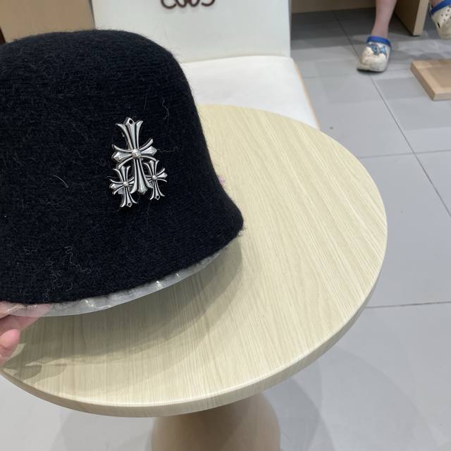 Chrome Hearts high-quality soft alpaca wool knitted fisherman hat for women in autumn and winter, all-match Korean style, small basin hat with large head circumference, bucket hat