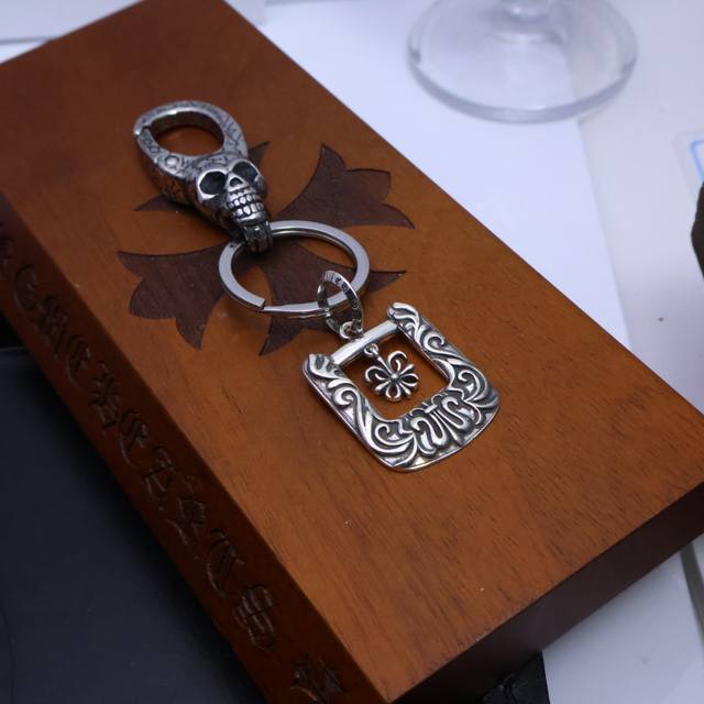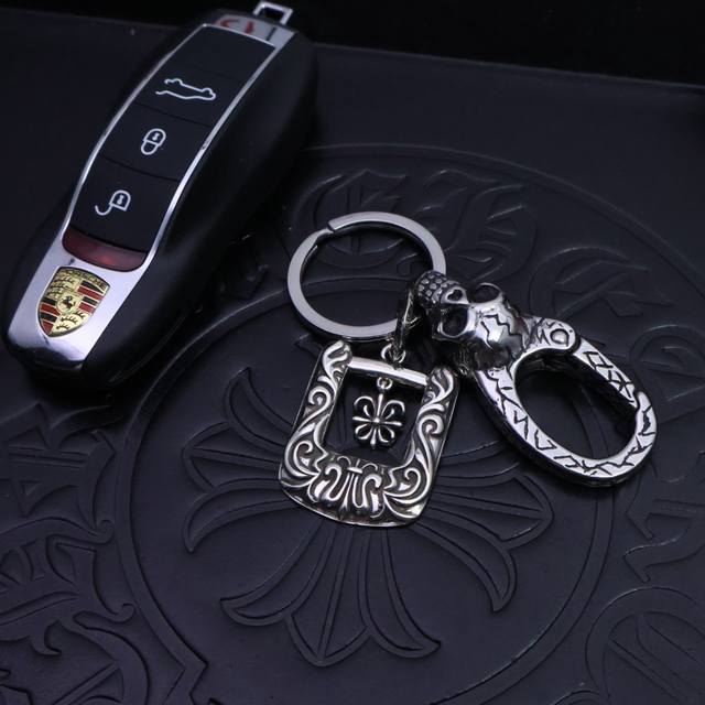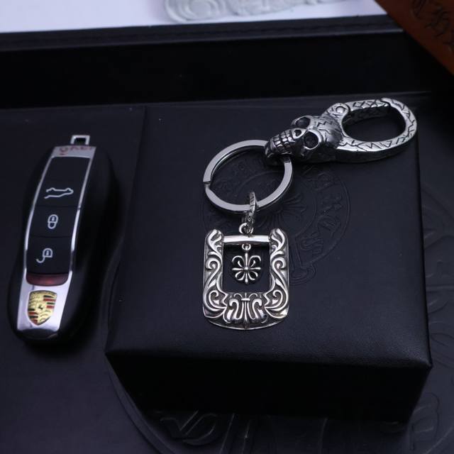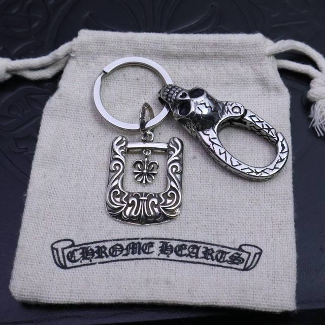 2025 New Arrival Chrome Hearts keychain/pants/bag charm, top-notch craftsmanship and texture. Small details enhance the overall taste, making it incredibly cool to match. Chrome Hearts silver jewelry is handcrafted, with excellent workmanship and texture. The style is distressed and rugged, intentionally retaining the black color of 925 silver after oxidation, and then polishing it. Soft gray and black shadows are added to the shiny silver surface, creating a very distinct sense of layering