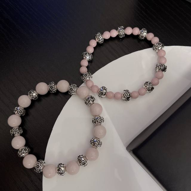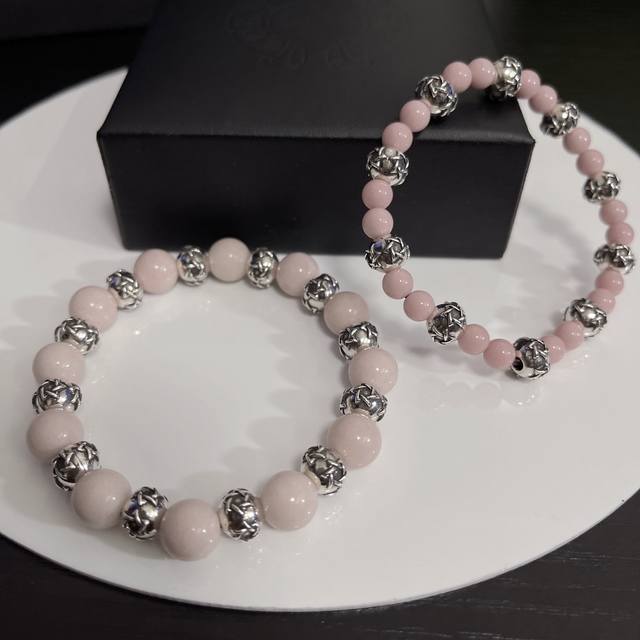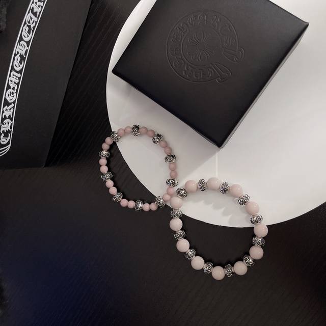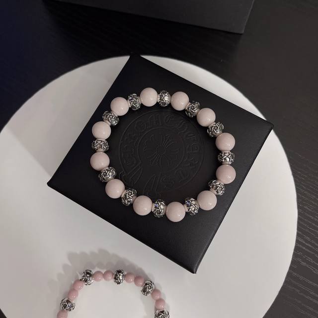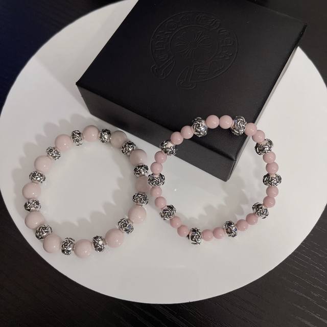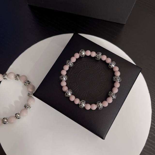 A Chrome Hearts pink natural stone bracelet/rope/bracelet, suitable for women, men's 10M, women's 6M.