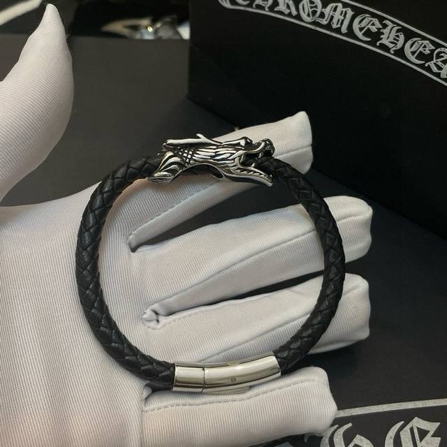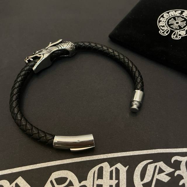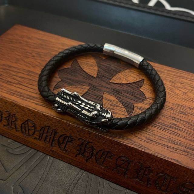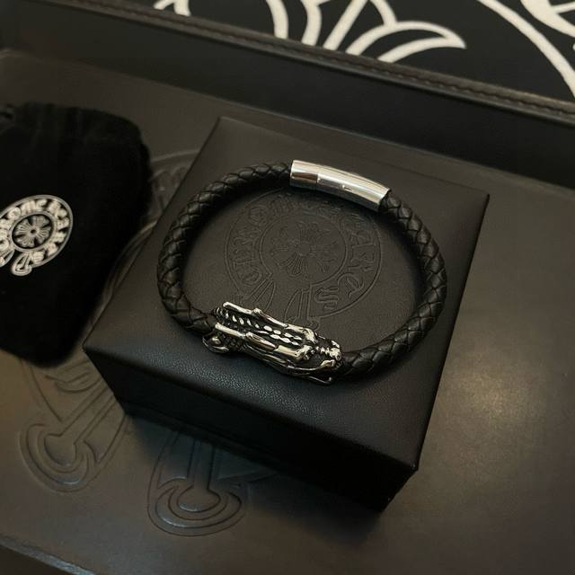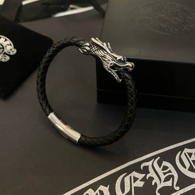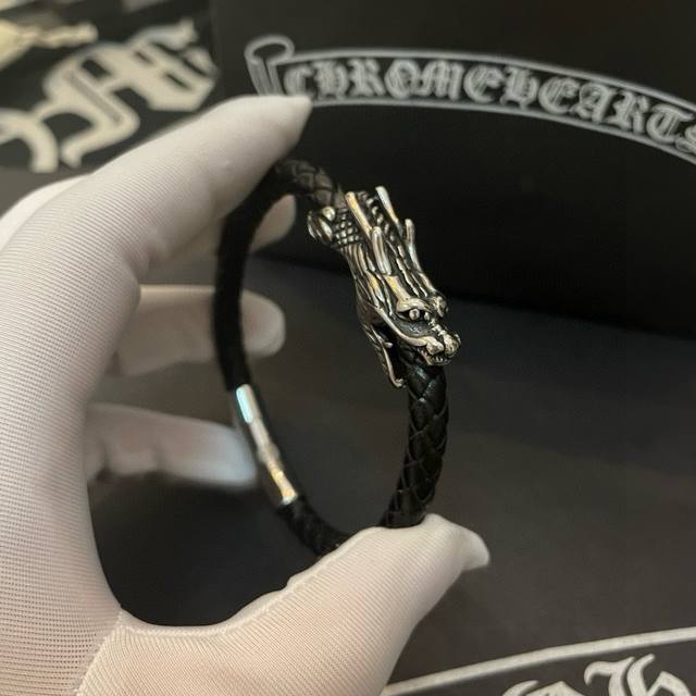 Batch Chrome He Rts Chrome Hearts counter same style dragon head leather rope bracelet ~ authentic mold trendy fashion must-have for men and women can wear couples style same style rock punk Thai silver style retro elements trendy versatile official website same