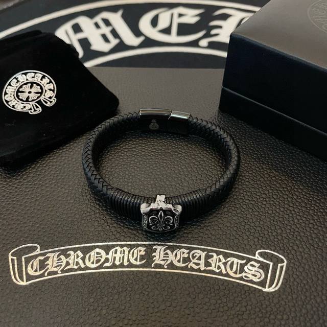 Chrome He Rts Chrome Hearts counter-same style Scout flower leather cord bracelet ~ Authentic molded trendy and fashionable must-have for both men and women, suitable for couples, same style rock punk Thai silver style retro elements trendy and versatile official website style