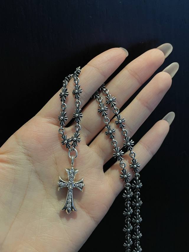 Full Sapphire Zircon Cross Flower Tiny One-piece Chain