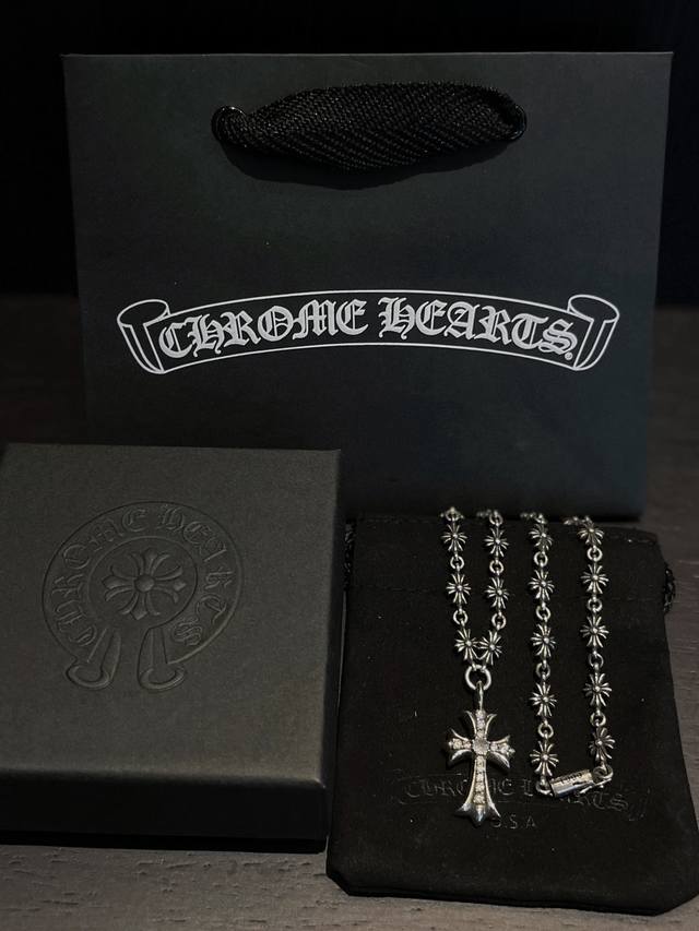 Chrome Heart Blue Zircon Cross Necklace