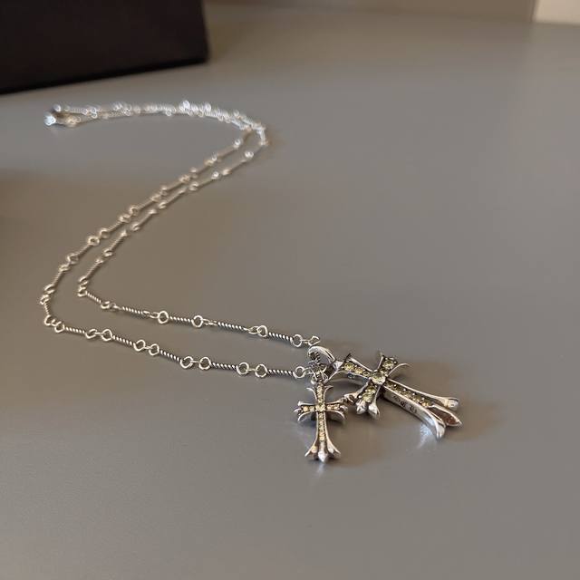 New boutique quality Chrome Hearts classic retro necklace with green diamond bul