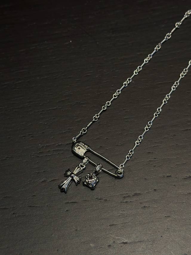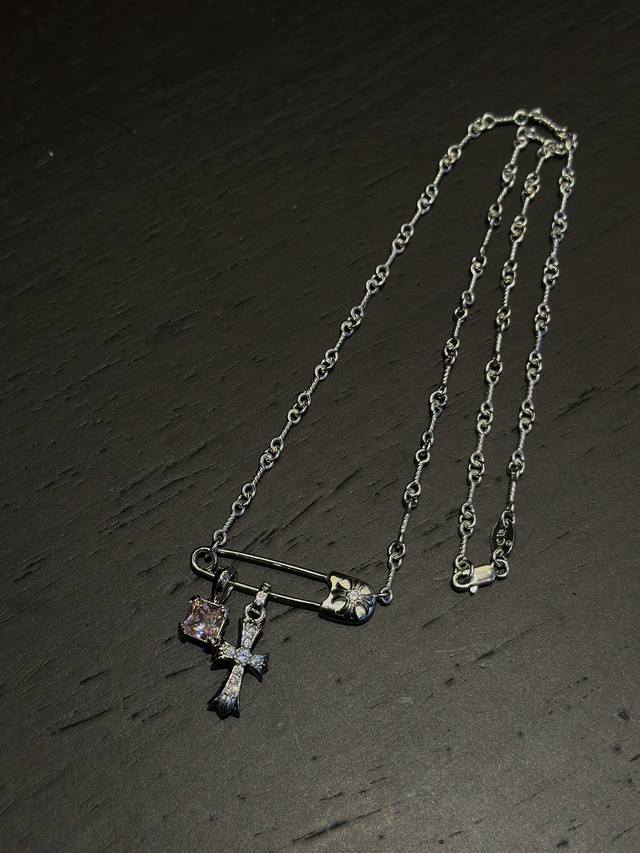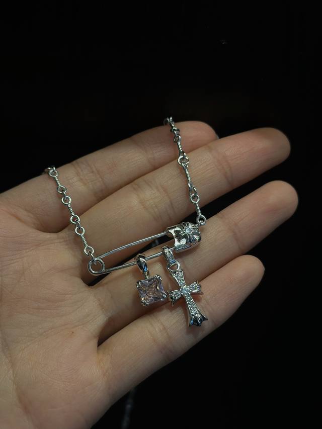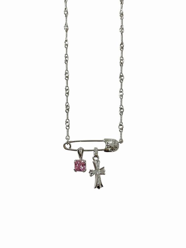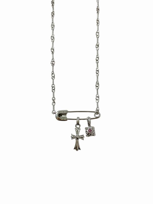 Chrome Hearts Brooch Cross White Gold Plated Sugar Cube Necklace