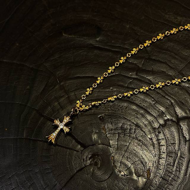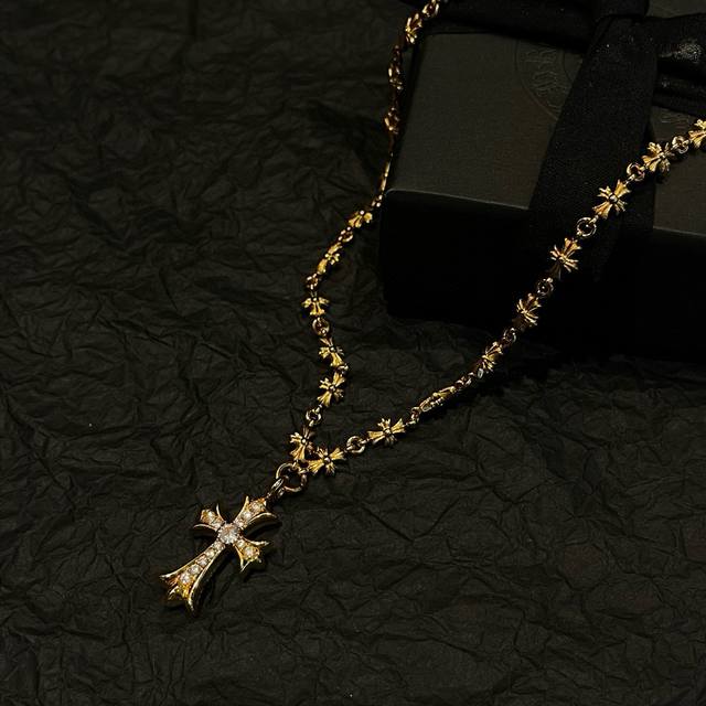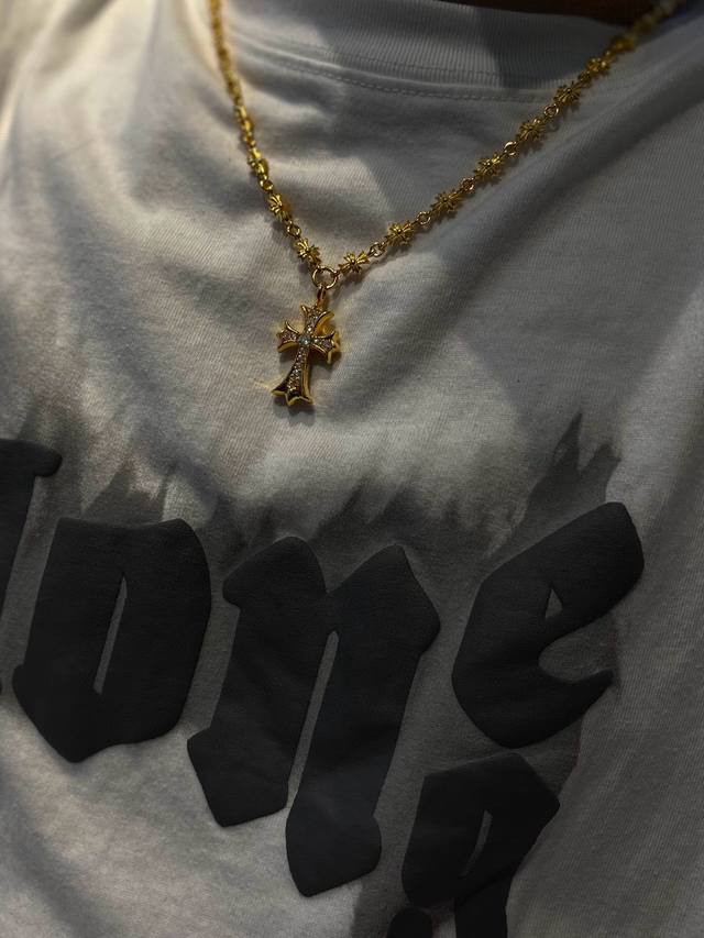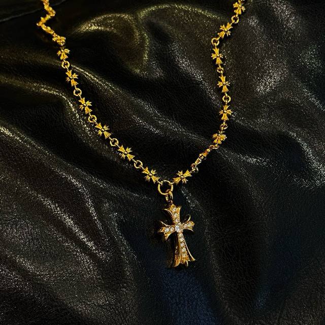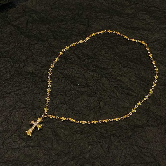 / Chrome Hearts gold-plated stone cross necklace Length: 60cm