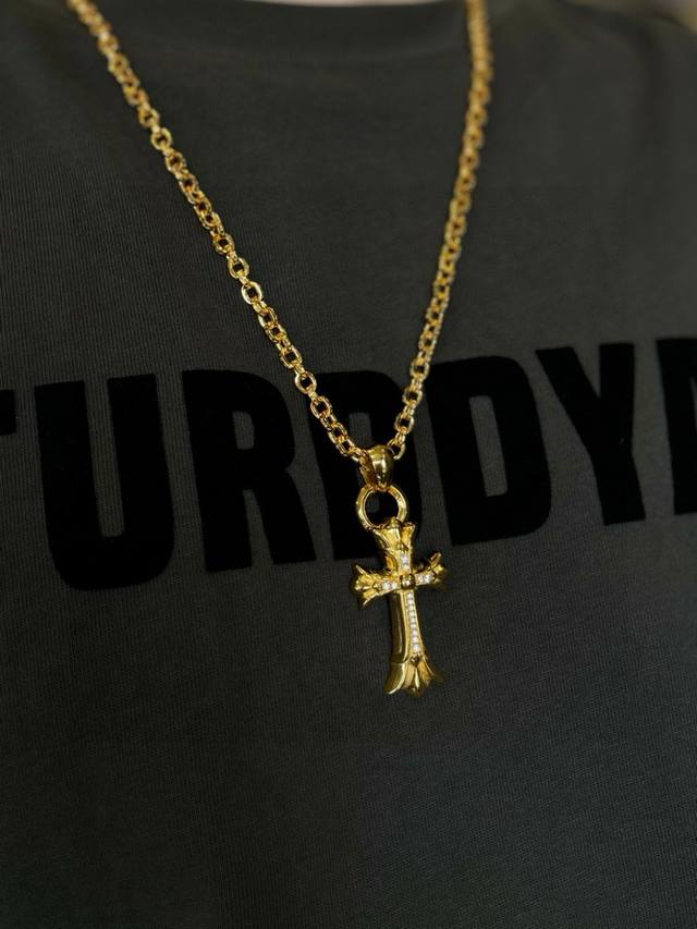 Chrome Hearts Gold-Plated Stone-Set Stacked Cross Chain (