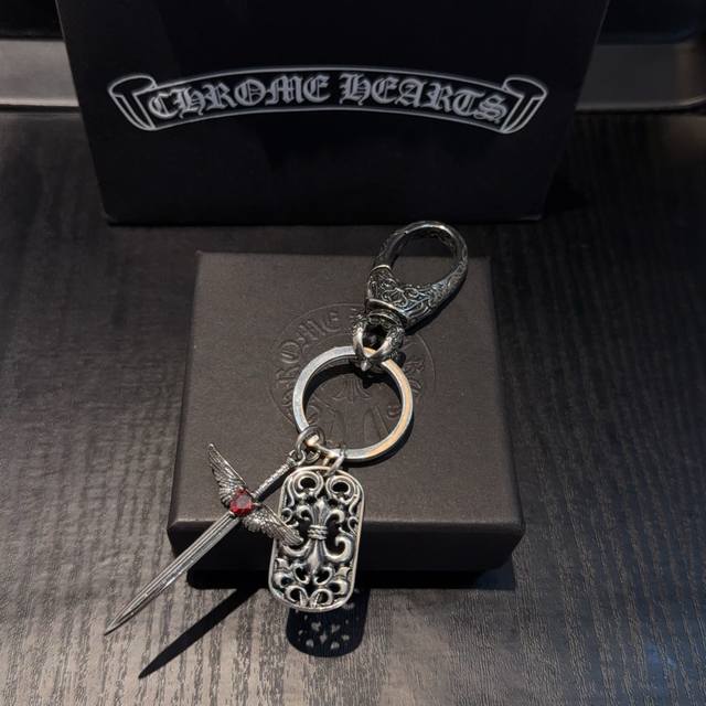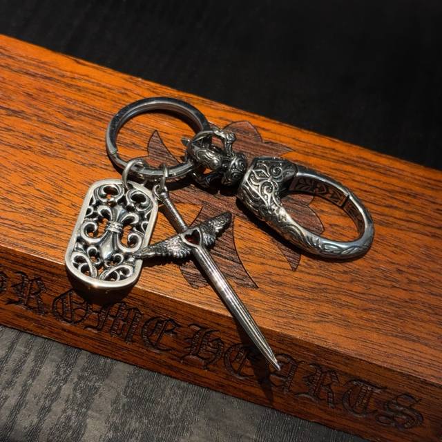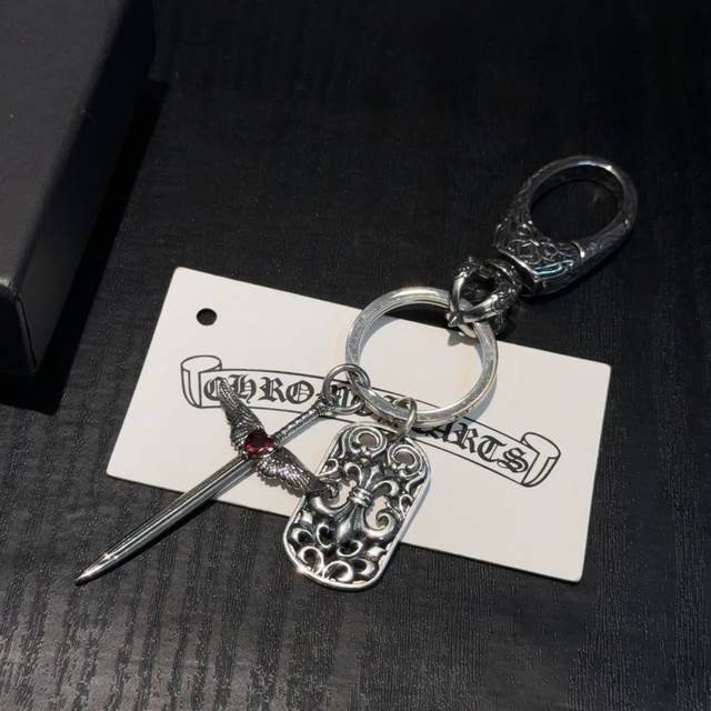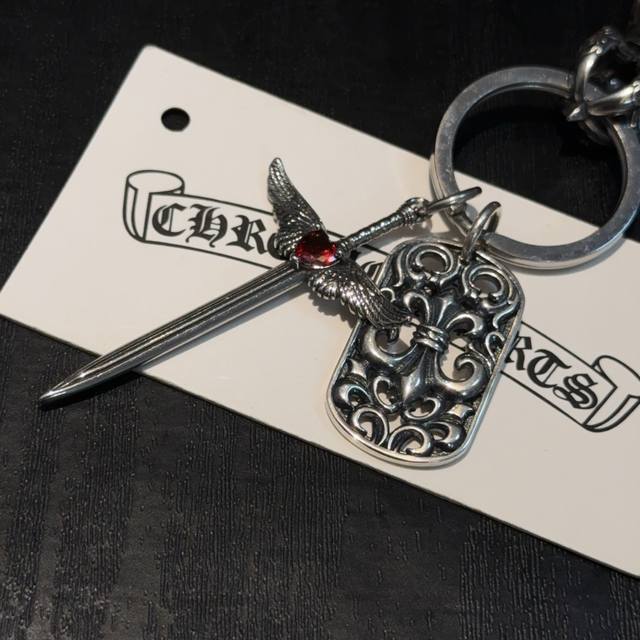 Chrome Hearts large lobster clasp keychain with exquisite carving craftsmanship and quality is purely handmade. Genuine mold opening, trendy and fashionable, a must-have for both men and women. Couple's style, rock punk Thai silver style, retro elements, trendy and versatile, same as the official website