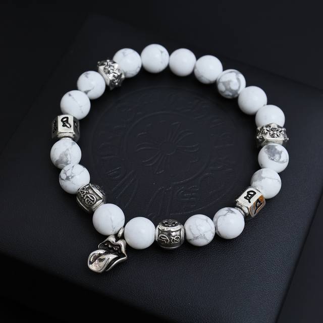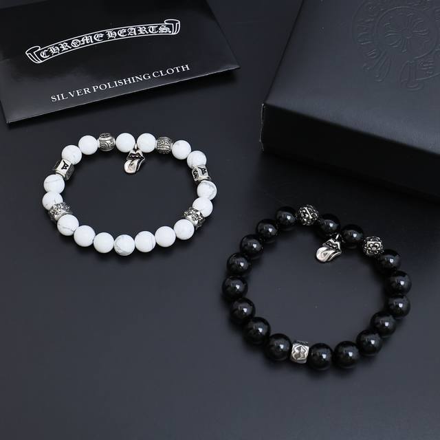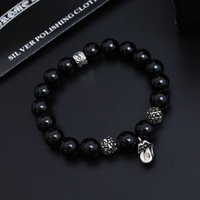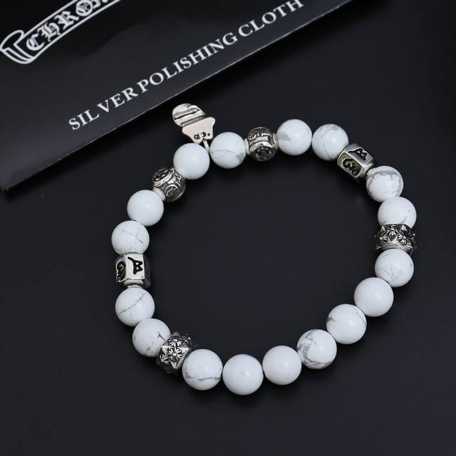 Chrome Hearts Natural Bead Silver Bracelet for Couples. A Chrome Hearts bracelet that exudes understated charm. One of Chrome Hearts' classic bracelets, the overall quality is excellent. The engraving and detailed patterns are clearly visible. The color is as pictured. It looks great layered with other bracelets and is compatible with various styles. Same style as in boutiques. Unisex! Can be used as couple bracelets! Can be stacked! Size: 16-22 (elastic)