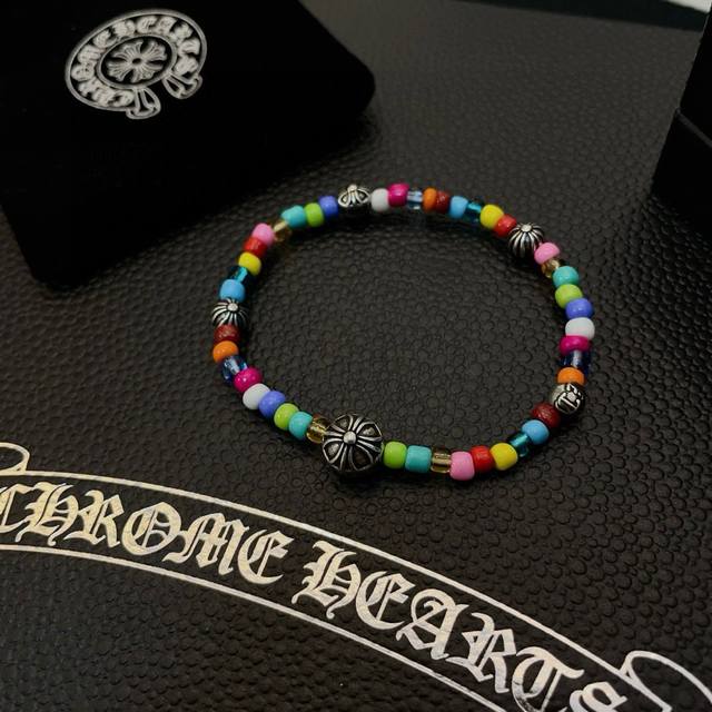 Chromehearts five-silver glass bead bracelet. The Chromehearts five-silver glass bead bracelet is colorful and looks like a rainbow. It is very unique and suitable for stacking.
